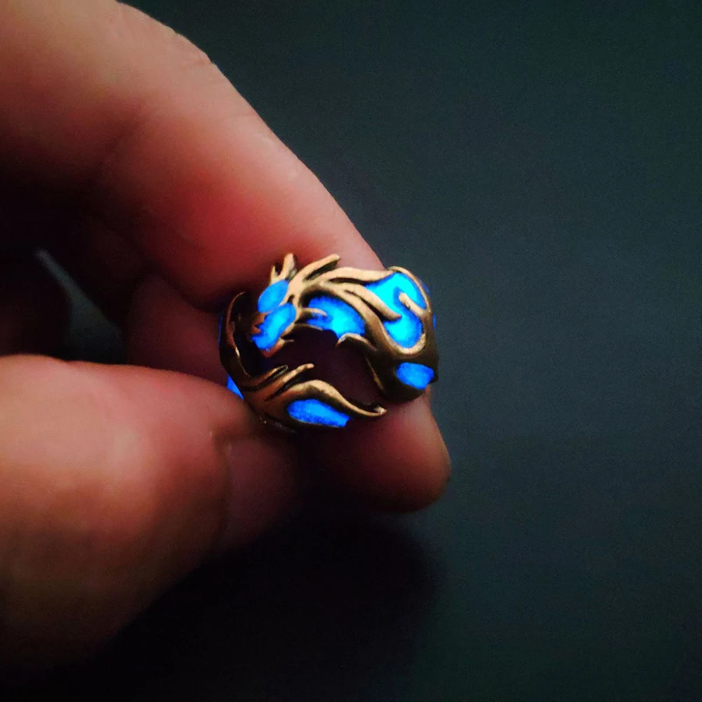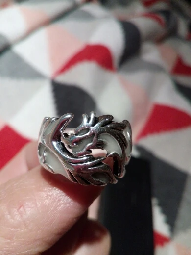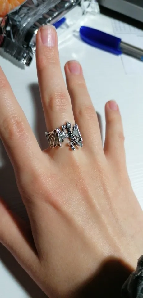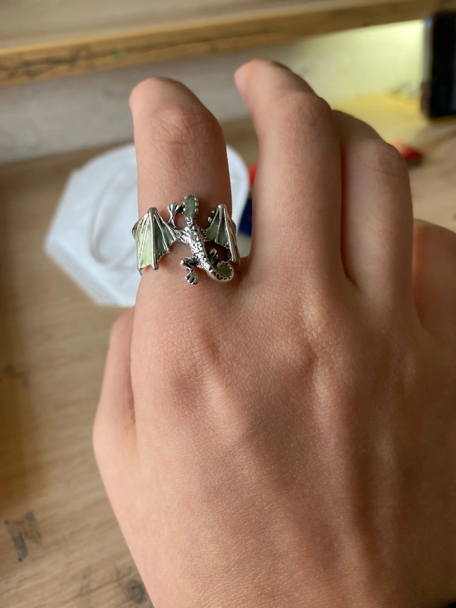 Колечко замечательное, дракон очень красивый, светится в темноте, если перед этим его под лампу положить. Регулируется.