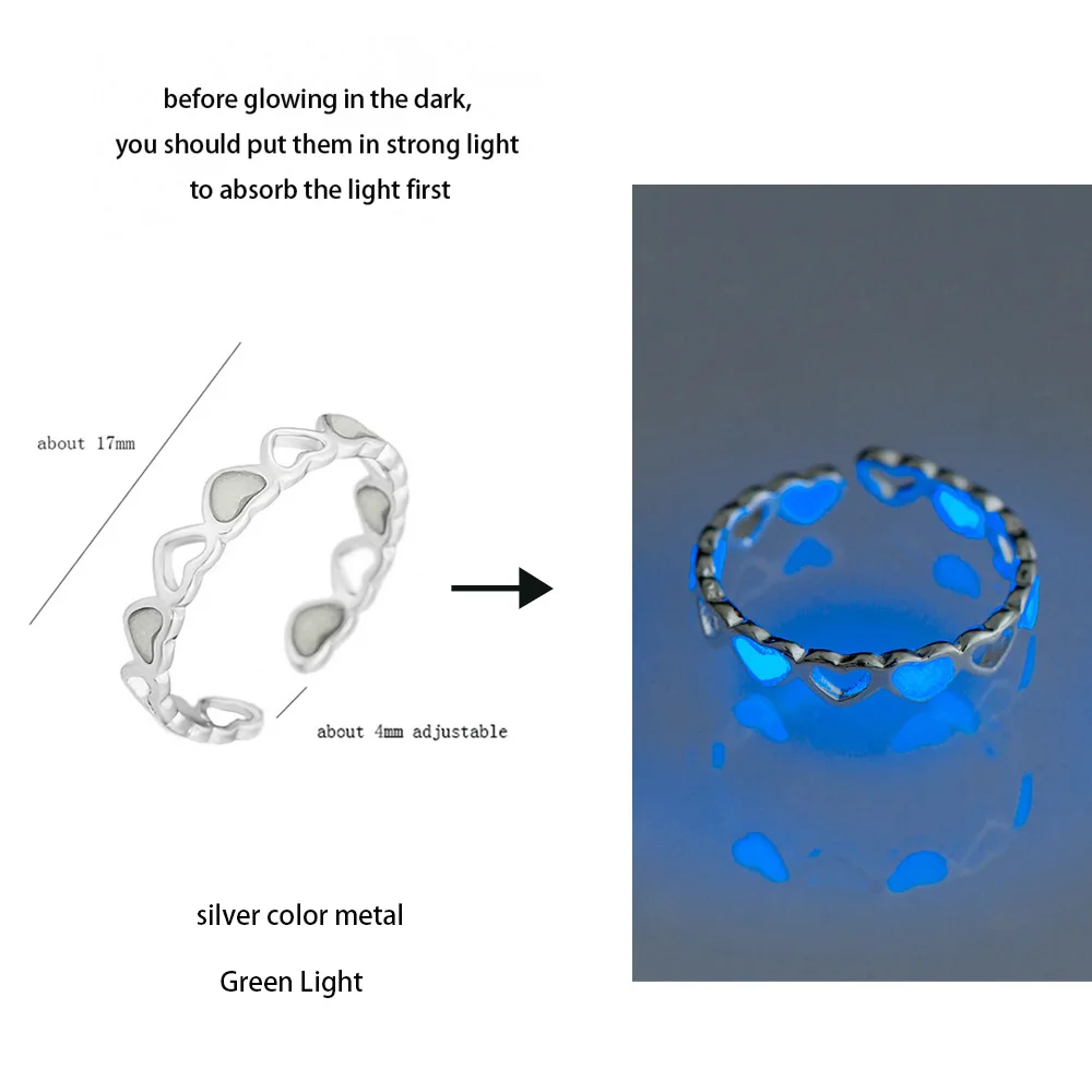 В реальной жизни заказ гораздо лучше выглядит, чем на фотографии. Великолепное качество за такие деньги, продавцом довольна. Пришёл быстро, без брака. В подарок продавец положил резинку для волос :) Кольцо регулируется, в темноте очень ярко светится.