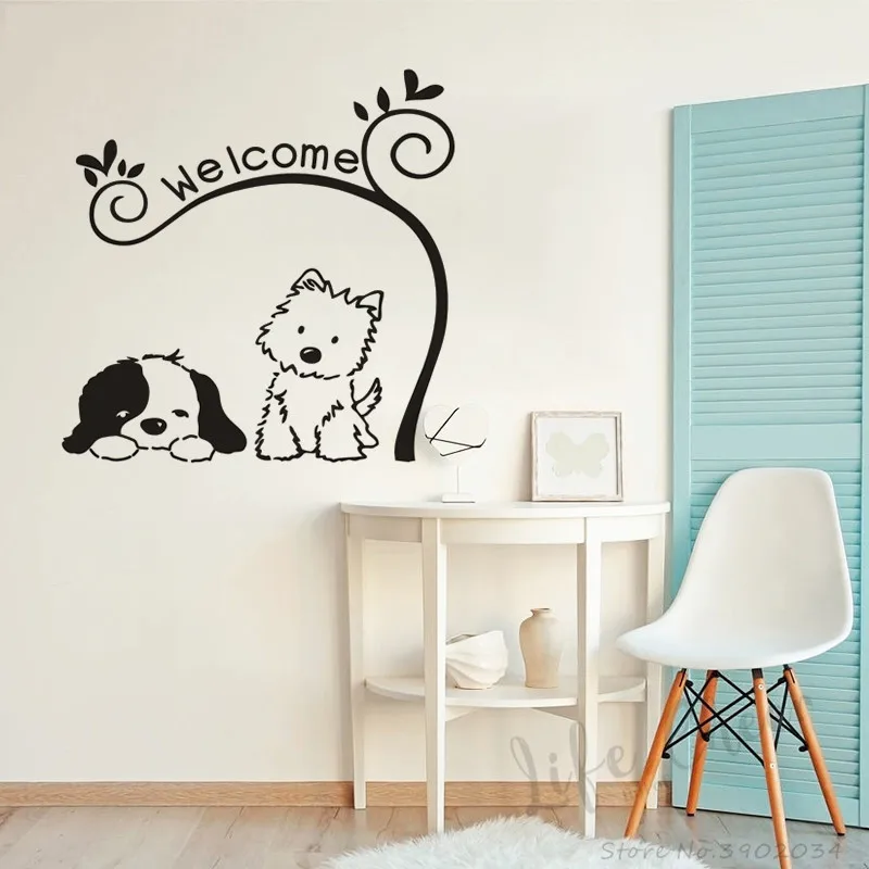Pet Shop виниловая наклейка с надписью Welcome, Симпатичный кот собака, наклейка на стену, Наклейки на стены, окно, Постер, украшение для входной двери дома
