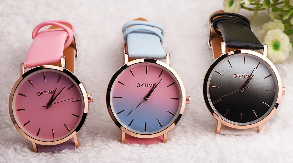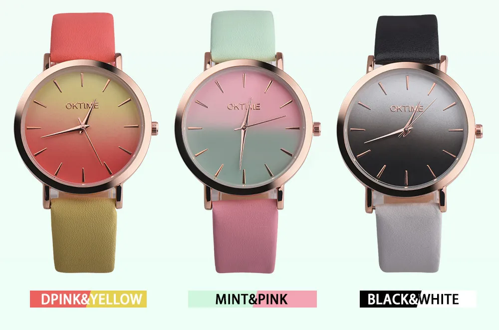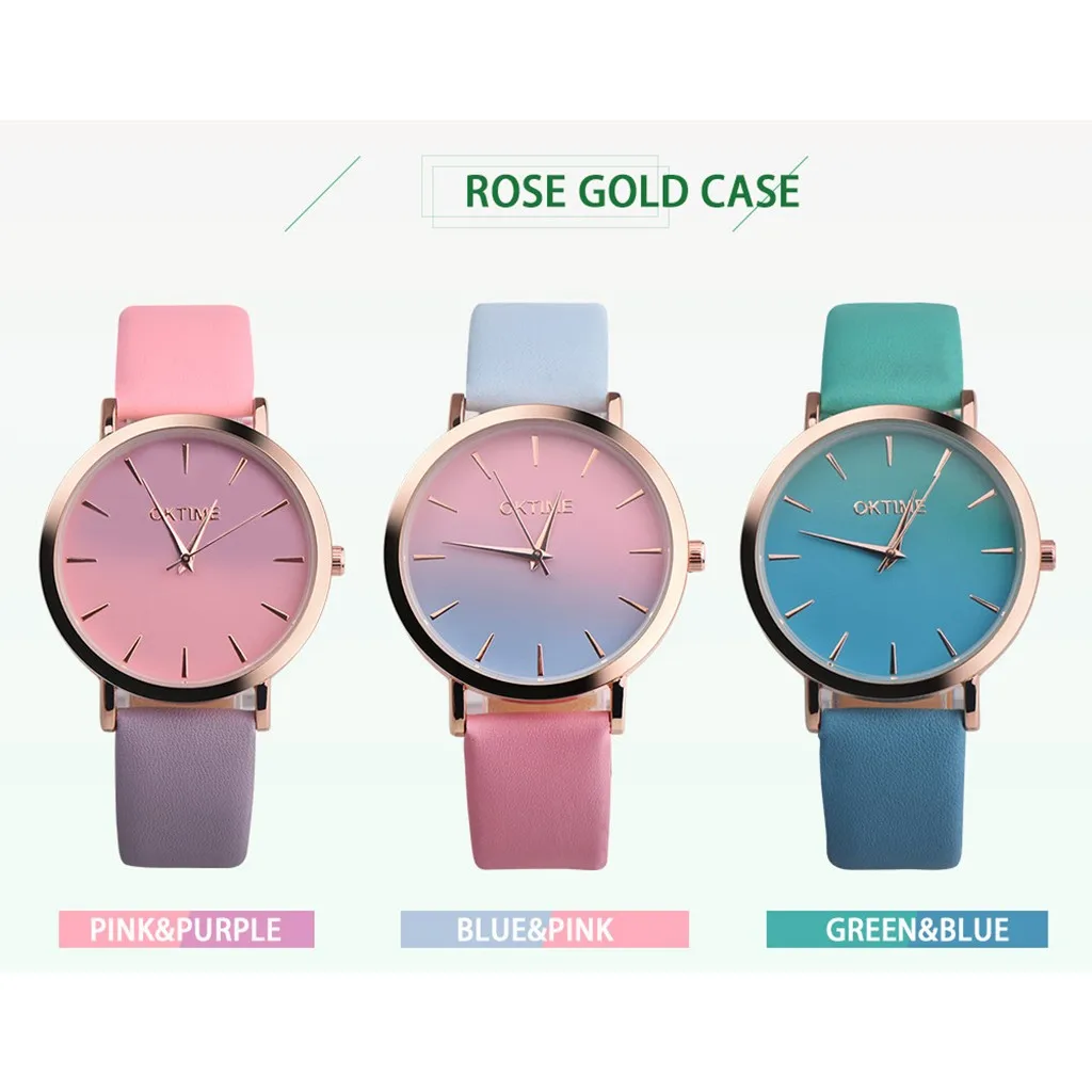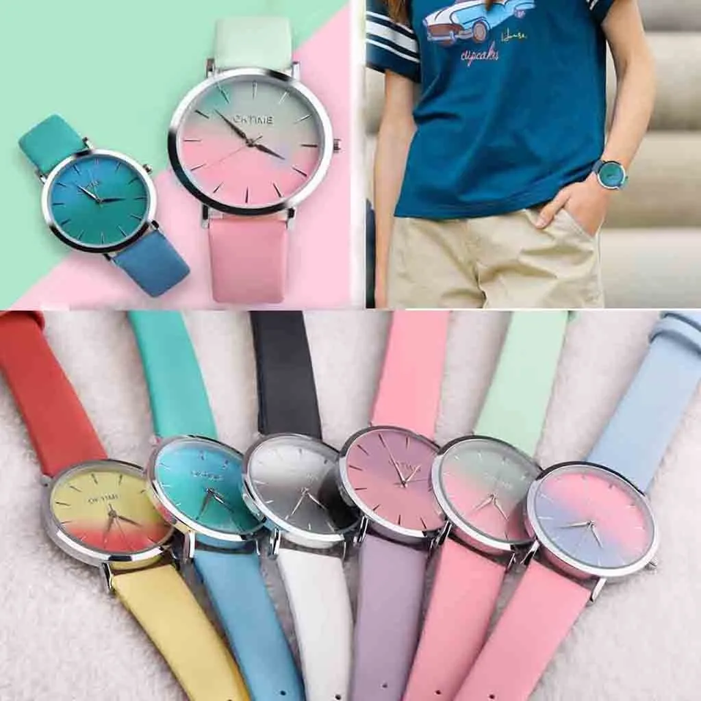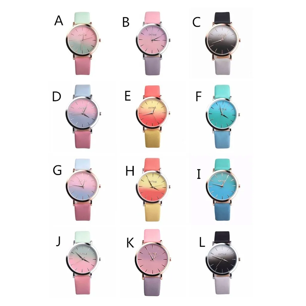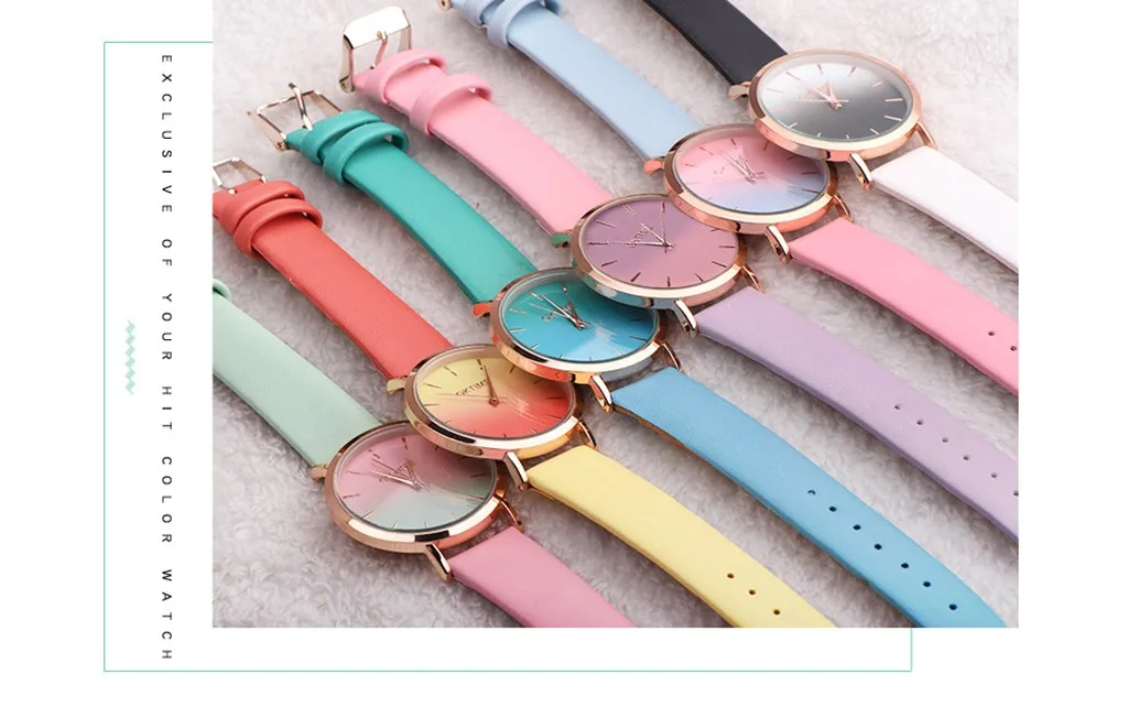 Аналоговые кварцевые наручные часы в стиле ретро радужного дизайна с кожаным ремешком, модные женские наручные часы, женские часы #10