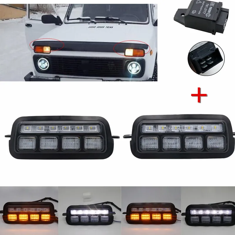 2x автомобильный Стайлинг, 7-дюймовый светодиодный налобный фонарь, боковые габаритные огни, задний фонарь s для Lada Niva 4x4 1995-2019, дневные ходовые огни светильник s с реле
