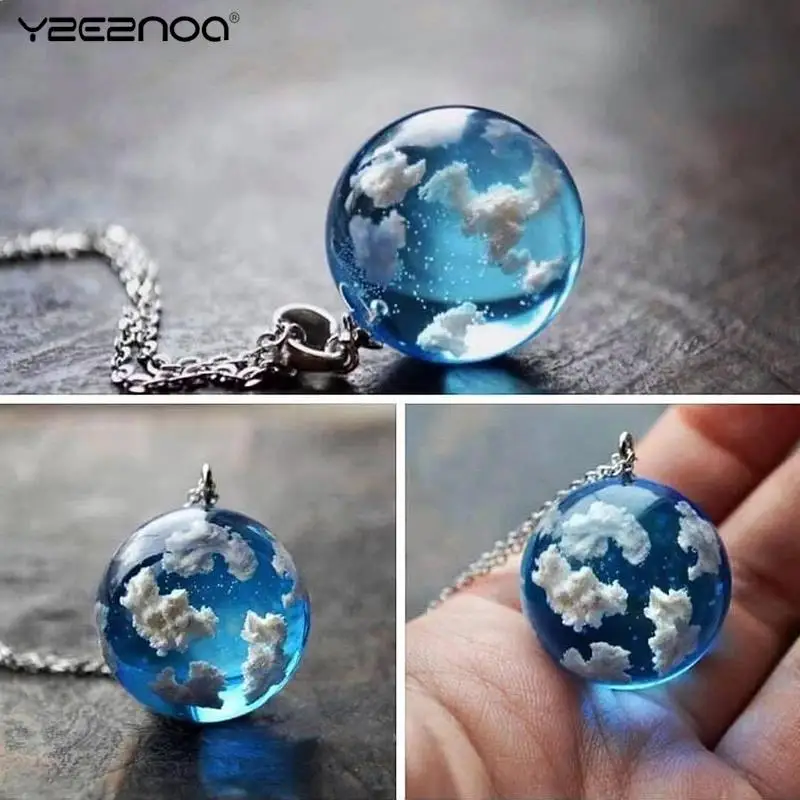 1 шт голубое небо белое облако цепь ожерелье Смола шар луна кулон ожерелье ювелирные изделия