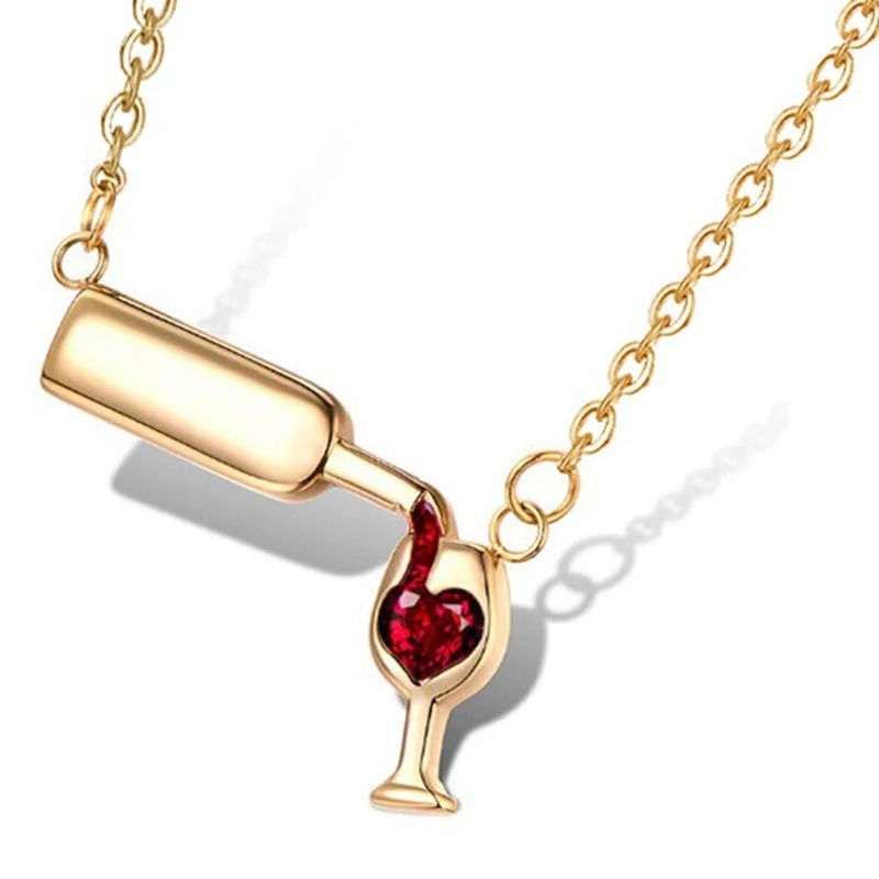 Женская мода из нержавеющей стали бокал вина серебряное ожерелье К...