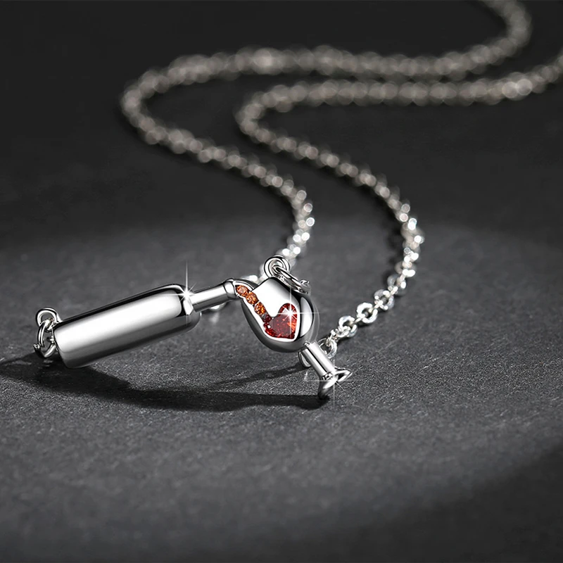Уникальное Серебряное ожерелье и кулон, дизайнерское ожерелье с винным бокалом, женское модное ожерелье из хирургической стали с кубическим цирконием