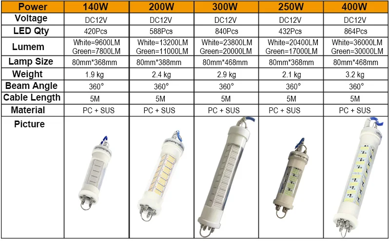 1. Превосходная проникающая способность: со встроенным взвешенным свинцом, эти подводные рыболовные огни погружены в глубину до 5 м, чтобы привлечь морскую жизнь в ночное время.