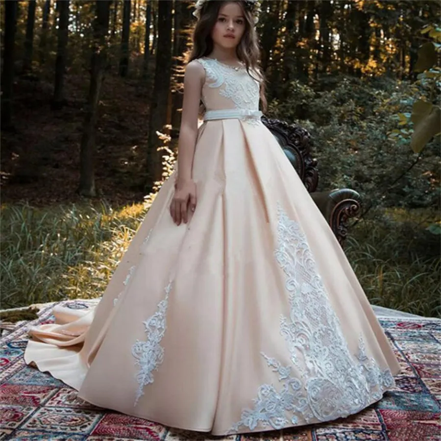 Атласные платья для маленьких детей для первого причастия, блестяще...