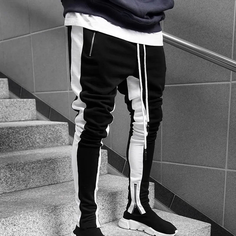 Черный тренажерные залы Jogger молния трек Штаны мужские повседневн...