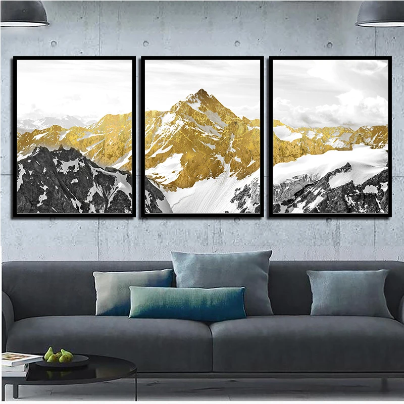 Постер на холсте Золотая Снежная гора, настенный художественный при...