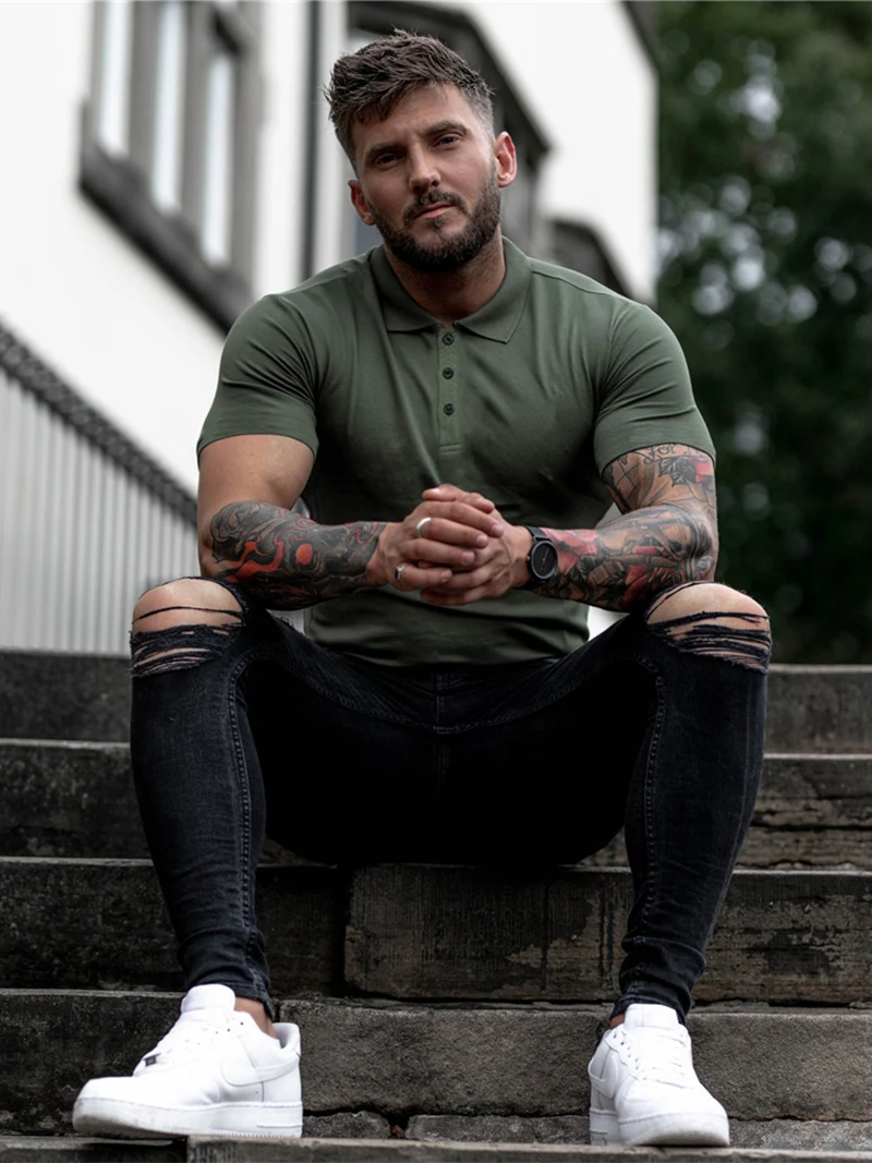 Рубашка-поло мужская с коротким рукавом, хлопок, однотонная, облегающая, дышащая, для спортзала и фитнеса, лето