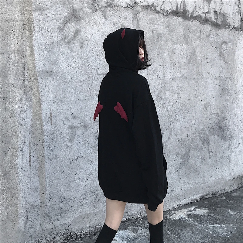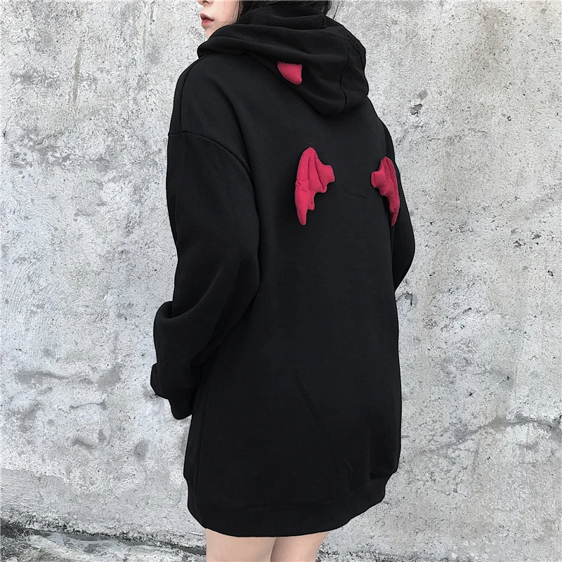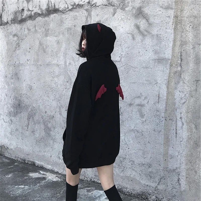 Толстовка Женская в стиле Харадзюку, худи в стиле панк, готика, дьявольский рог, шикарный пуловер с капюшоном, милые женские топы в стиле аниме, Осень-зима 2020