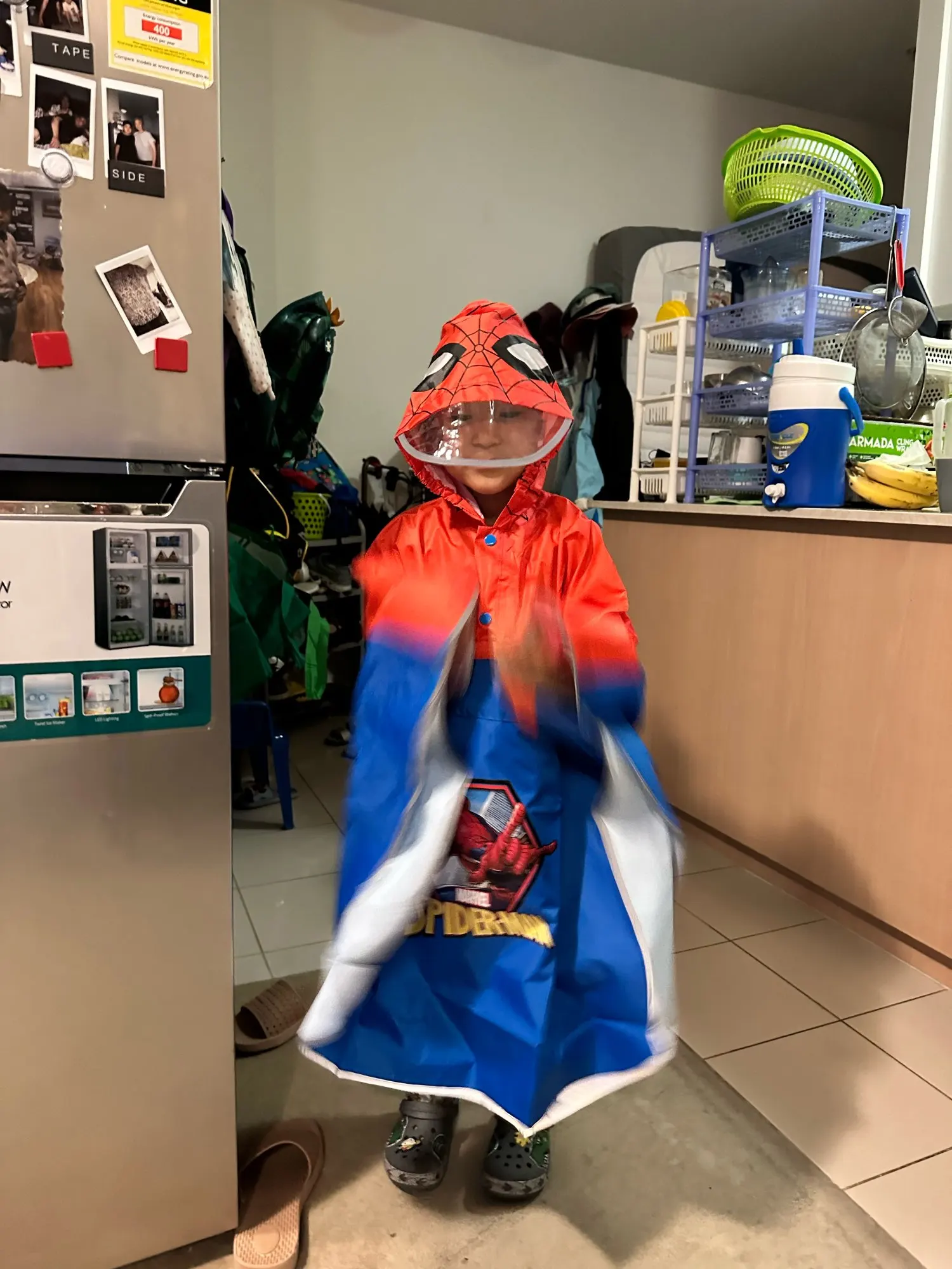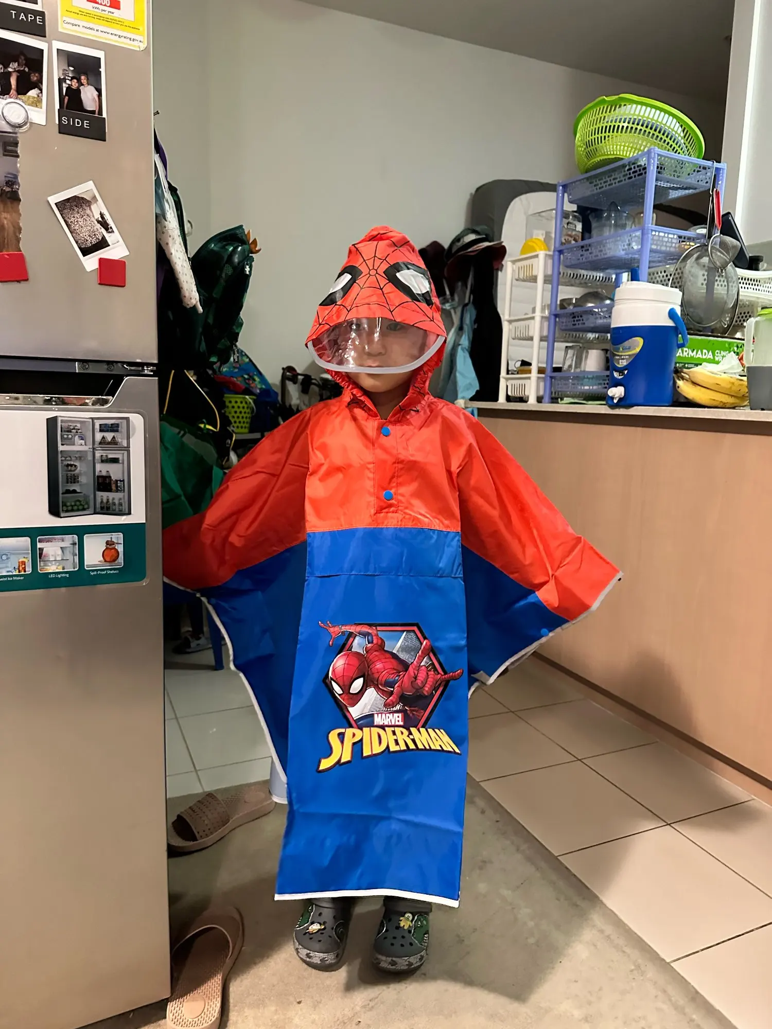 Детский дождевик с человеком-пауком, надувной плащ с мультяшной шап...