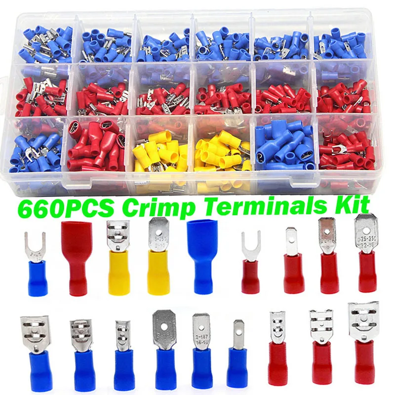 660 шт. AWG мужской и женский Spade кольцо обжимной стыковой соединения клеммы Электрический кабель провода разъемы Ассортимент Комплект водонепроницаемый