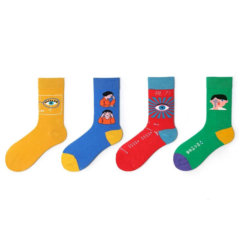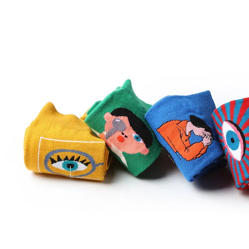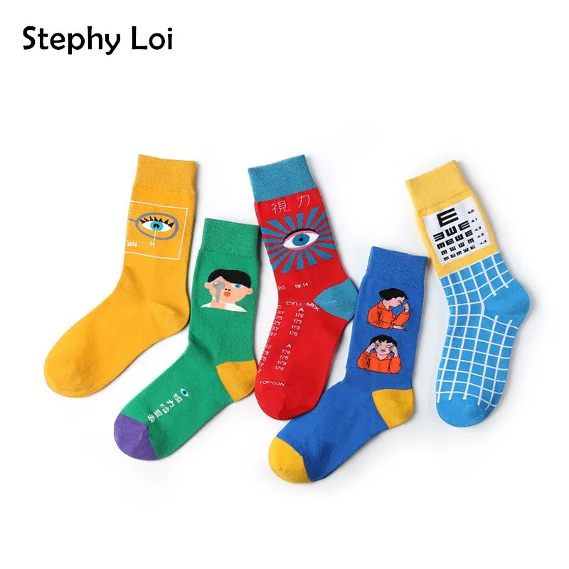 HarajukuНовинка; хлопковые носки для девочек с глазами; милая уличная одежда; Забавный подарок для девочек; дизайнерские носки для катания на коньках в стиле хип-хоп; цвет желтый; Красивые японские носки