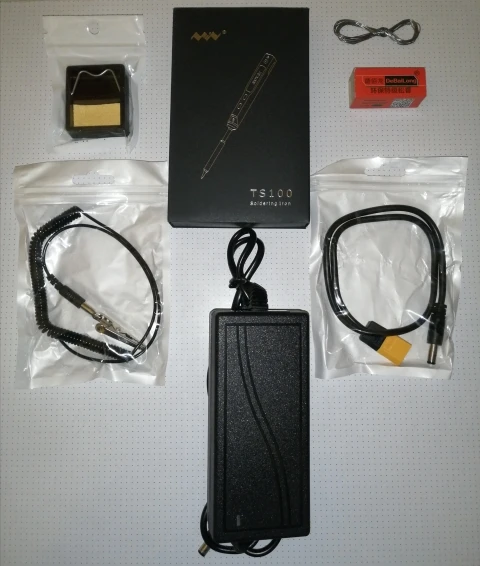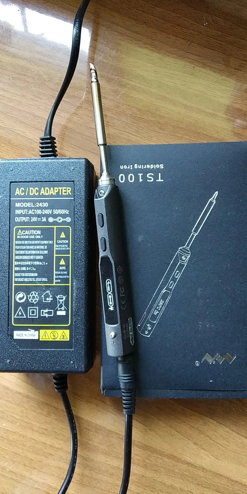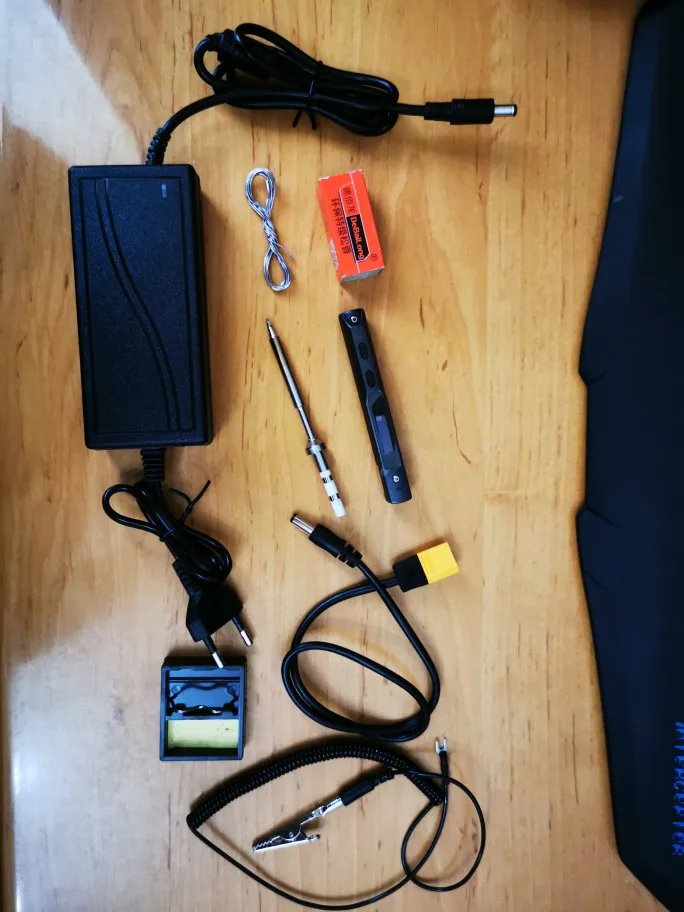 Уже ставший легендарным умный паяльник, которым очень удобно работать, удобно носить с собой, размер соизмерим с авторучкой. Во всей красе раскрывается при питании 24В, но будет работать и от 12В. Однако максимальную мощность в 65Вт сможет выдать при питании 24В. В данной поставке блок питания с выходным напряжением 24В и ток в 3A. Недостаток - коротковат провод как к блоку питания так и от БП, но с таким-то паяльником - разве это проблема? ;) Нагрев до 300 градусов, не более 10сек. При длительной работе рукоятка практически не греется, умеет беречь нагревательный элемент и во время простоя самостоятельно снижает температуру. Можно перепрошить кастомной прошивкой и даже погонять на паяльнике в тетрис. Отличный обзор опубликован на mysku dot ru slash blog slash china-stores slash 36898 dot html