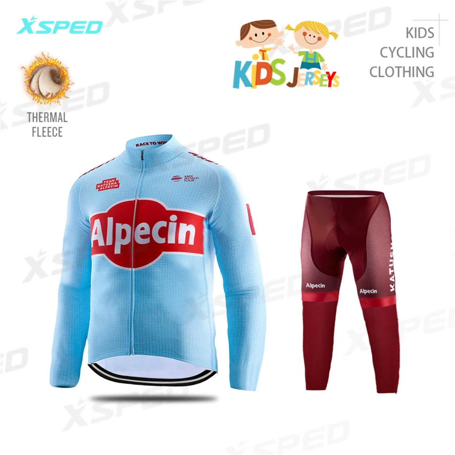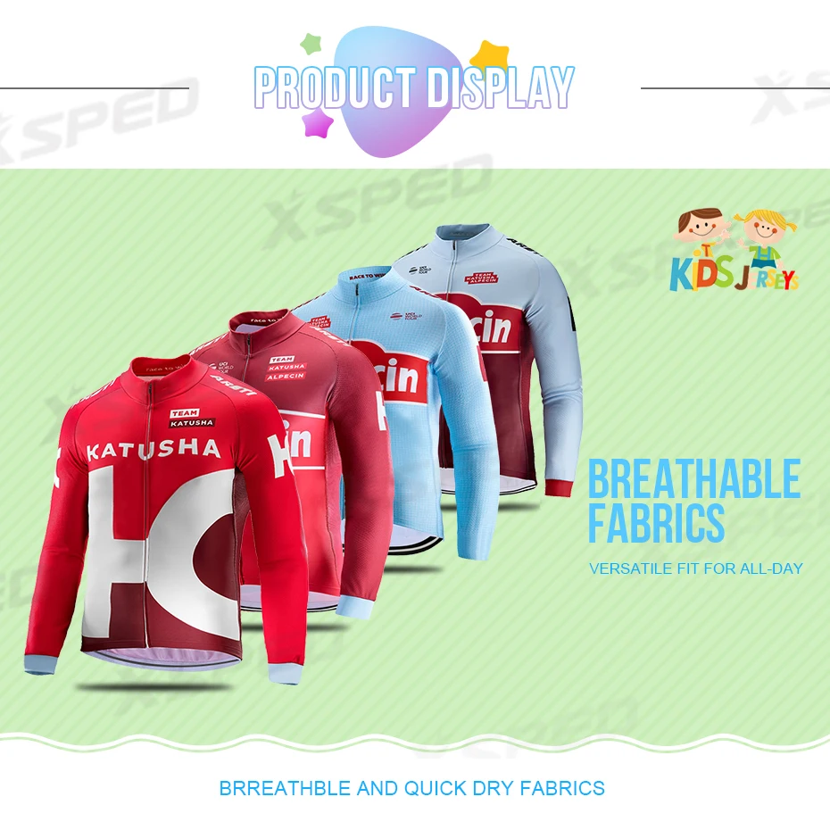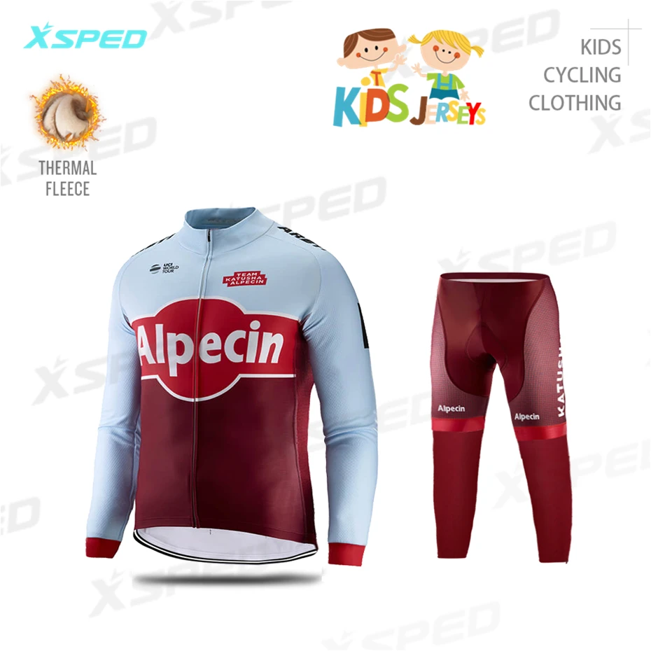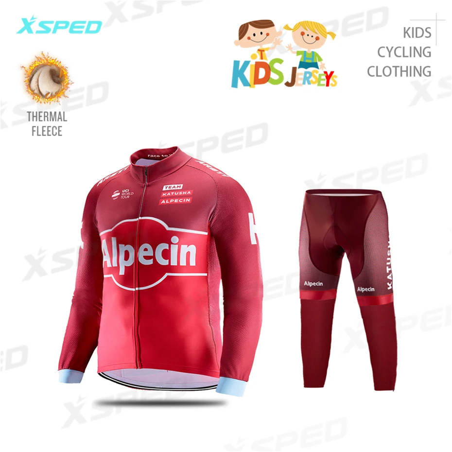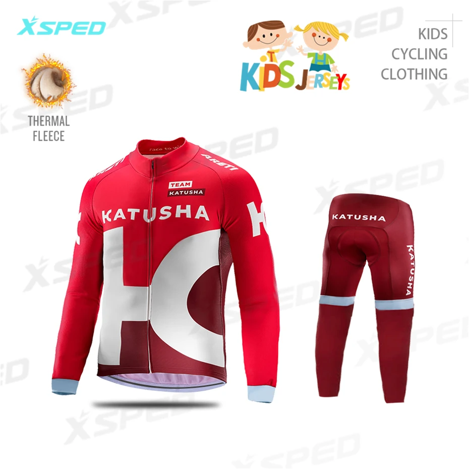 Детская одежда для велоспорта, зимняя трикотажная Теплая Флисовая велосипедная одежда с длинным рукавом, Детская уличная форма Katusha