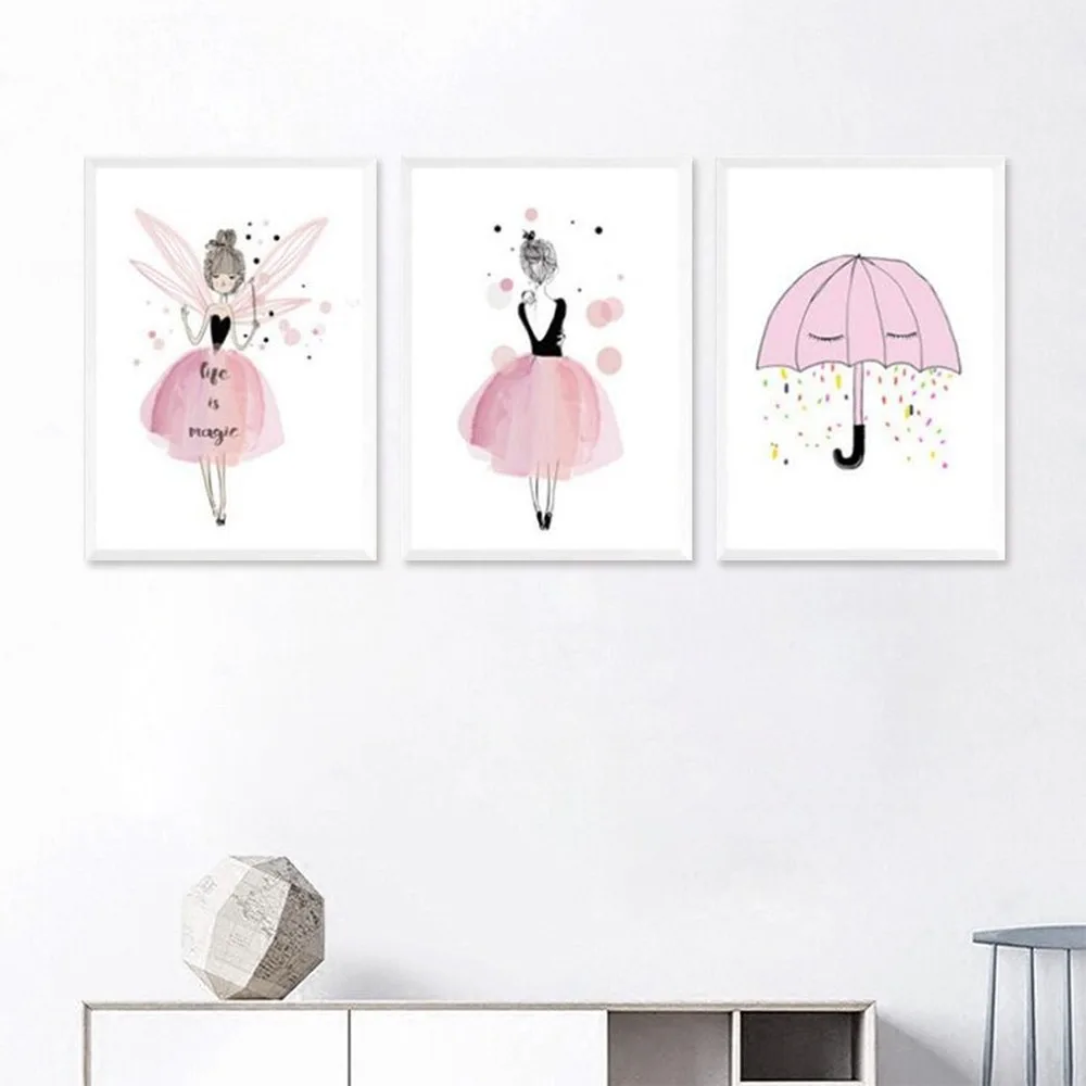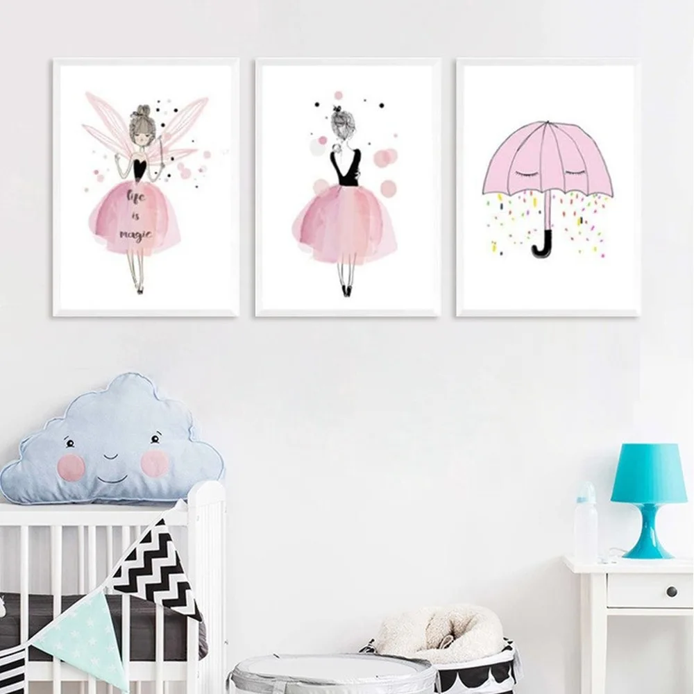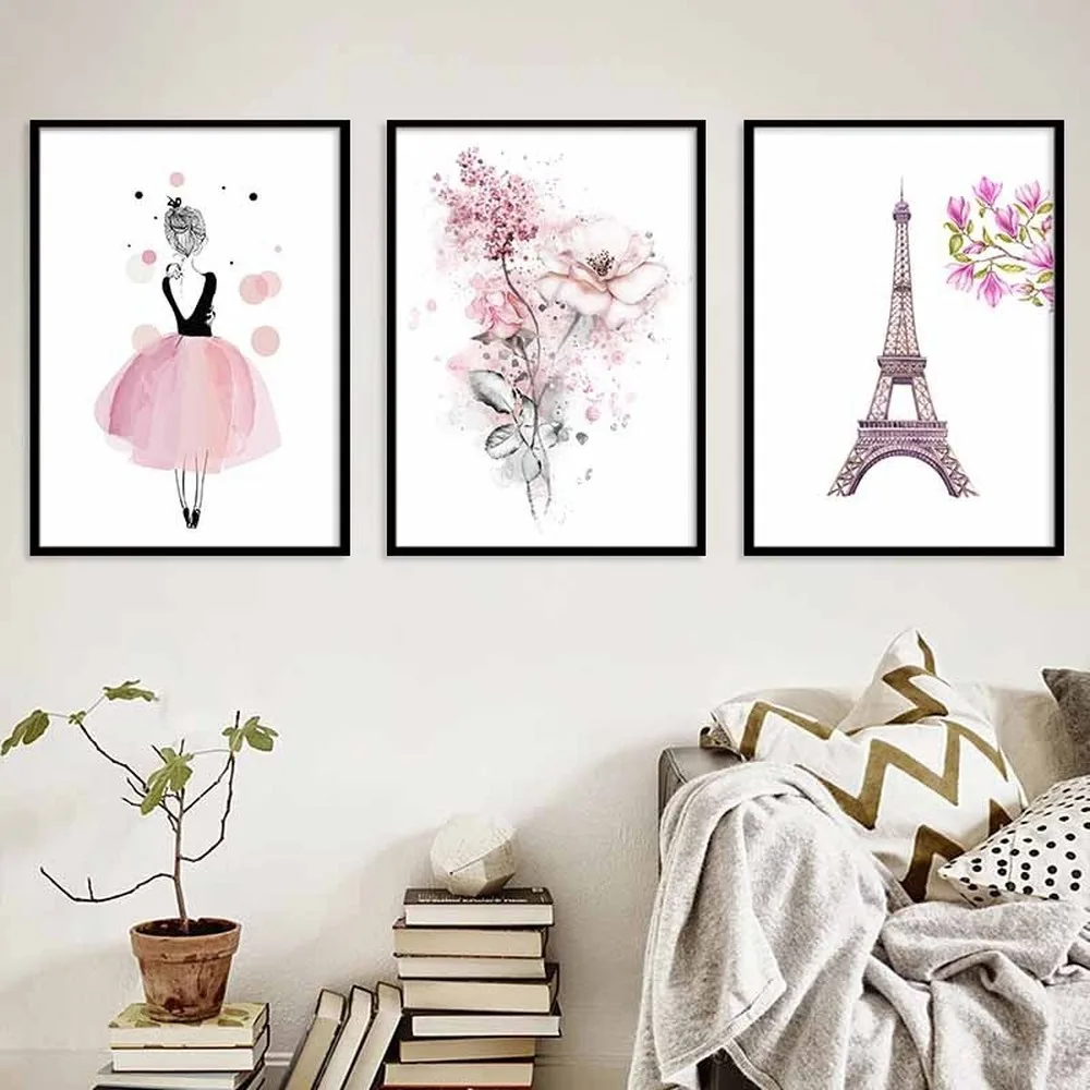 Картина на холсте розовая танцующая девушка Парижская башня Милая теплая детская комната украшение для стен в детский сад