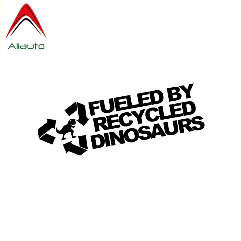 Модная Автомобильная наклейка Aliauto с питанием от переработанных динозавров, виниловая Водонепроницаемая Солнцезащитная Светоотражающая наклейка, Чернаясеребристая, 14 см * 4 см