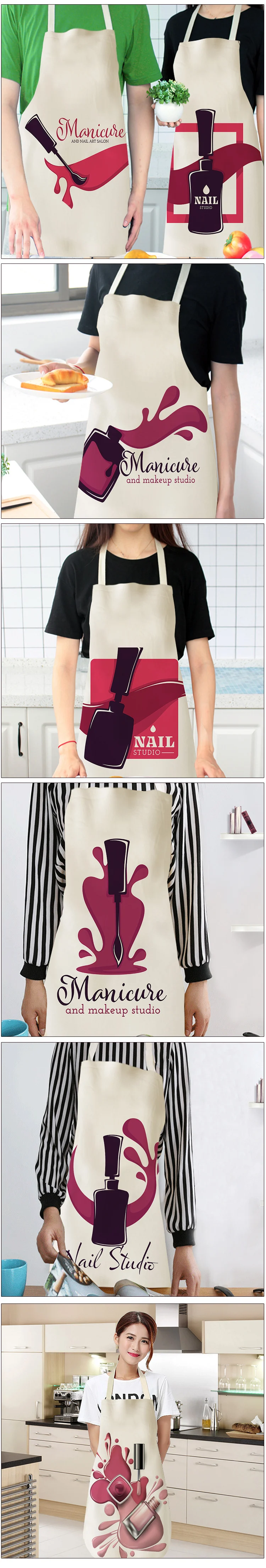 Льняные фартуки с цветочным рисунком для ногтей, для кухни, унисекс, для ужина, вечеринки, кулинарии, Забавный фартук для уборки