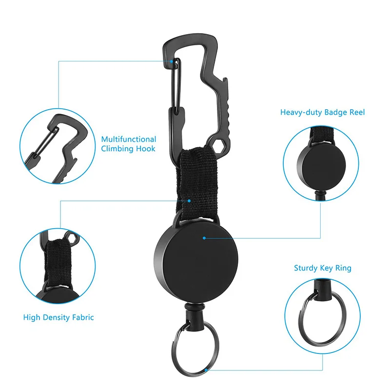 3 Упак. Выдвижной брелок-сверхмощный держатель Бейджа катушка с мультиинструментальным зажимом карабина, брелок с шнур из стальной проволоки до 25