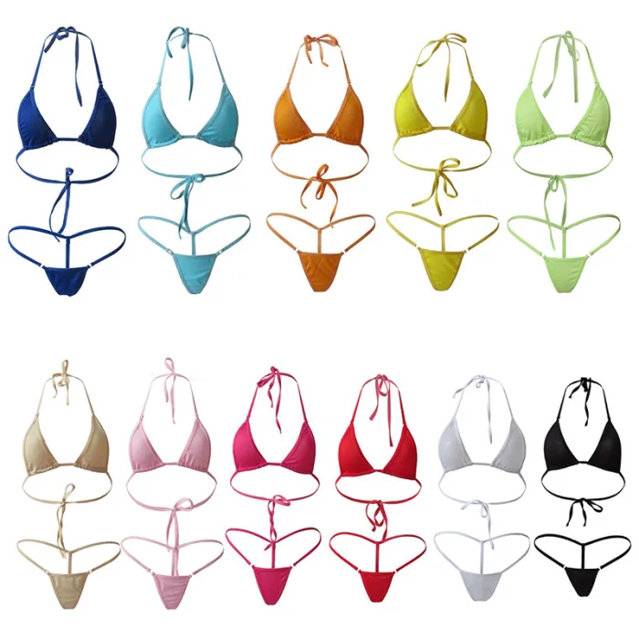 2. Регулируемый воротник-хомут, Бикини-топ с завязками сзади, стринги с низкой посадкой и мини-охват, этот комплект бикини очень удобен в носке, довольно привлекателен для вашей возлюбленной.