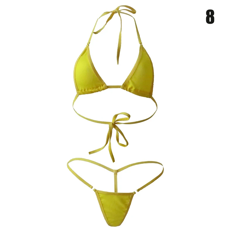 Новинка, Женский мини-купальник, комплект бикини бюстгальтер с завязками на шее, микро стринги, пляжный купальный костюм DOD886