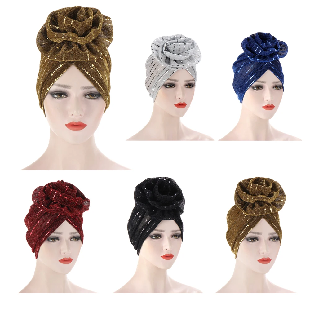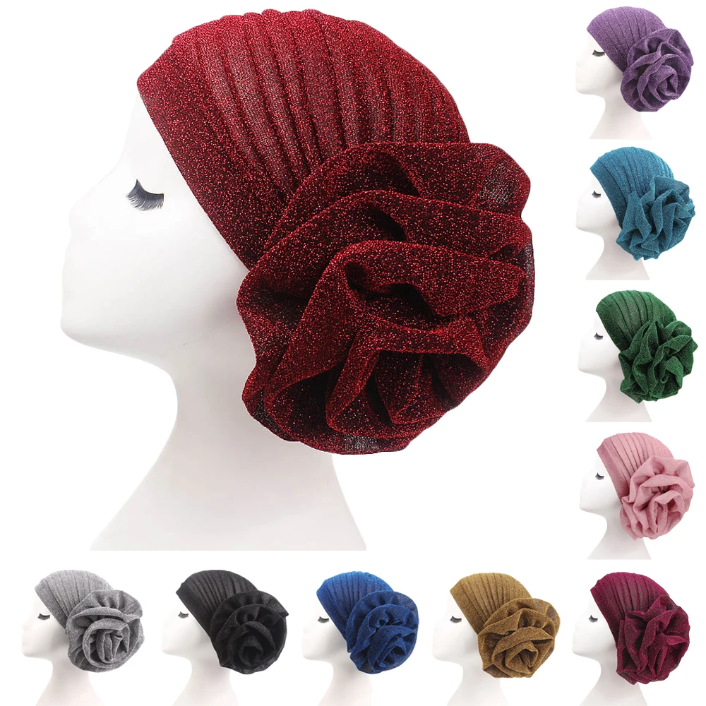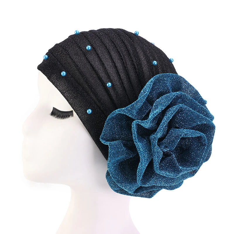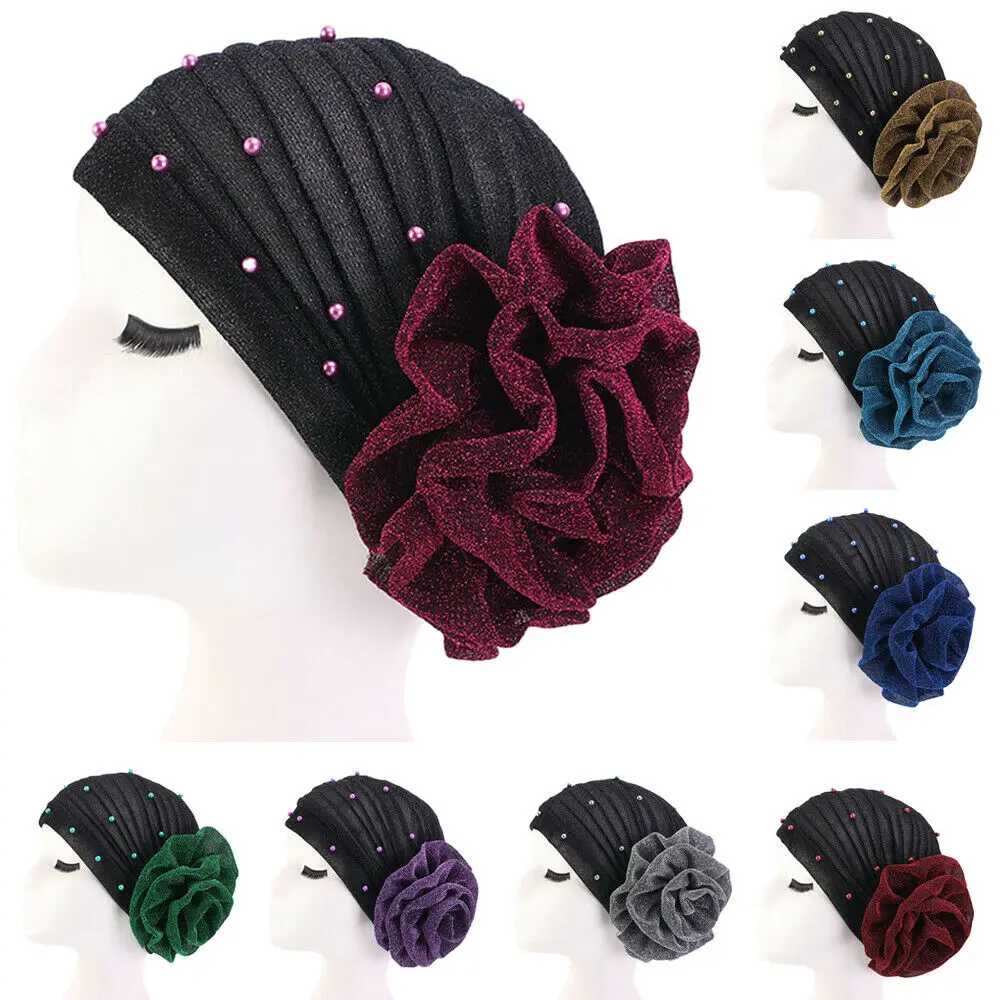 Индийский тюрбан, женский головной платок с крупными искусственными бусинами, жемчужинами, головной убор в мусульманском стиле, головной убор, блестящий плиссированный шарф, головной убор, шапка