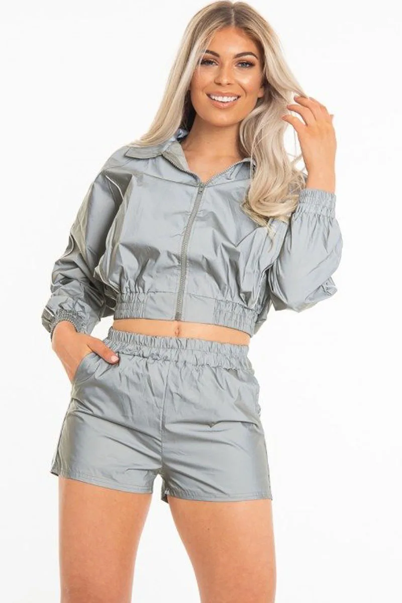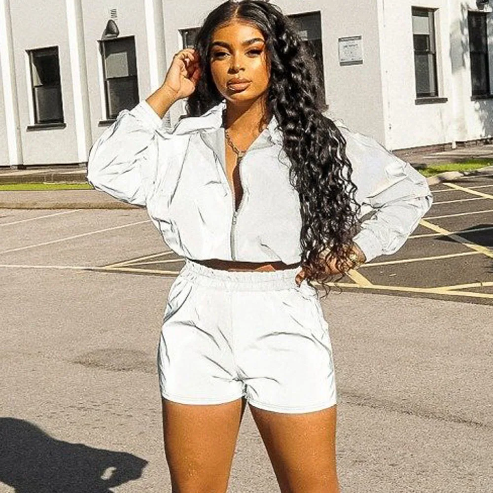 Женское светоотражающее пальто, Клубная одежда, повседневная укороченная однотонная куртка на молнии с длинным рукавом в стиле Харадзюку, уличная одежда в стиле хип-хоп, модная верхняя одежда, укороченный топ