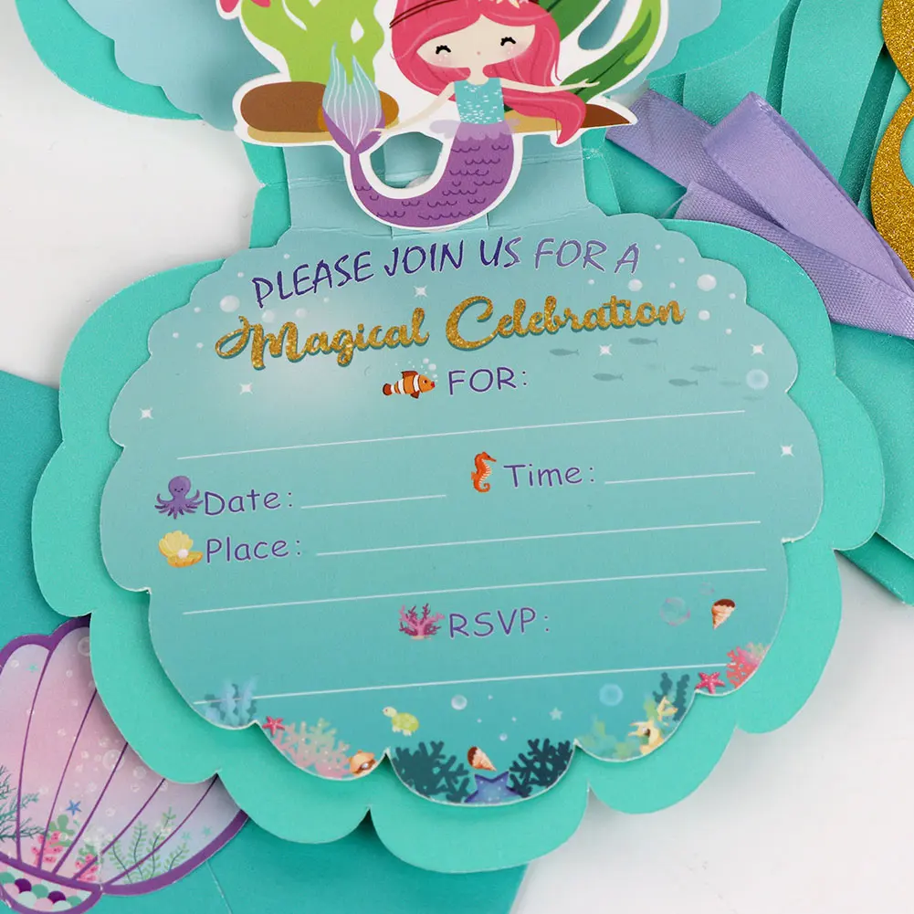 OurWarm 6 шт. приглашения русалки на день рождения, товары для детского душа, новые подарочные карты, тема русалки, свадебное украшение