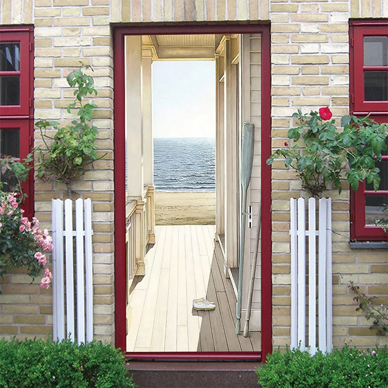 3D наклейки на дверь, наклейки сделай сам для гостиной, спальни, самоклеящиеся водонепроницаемые настенные фрески, съемные обои, домашний декор, 77x200 см