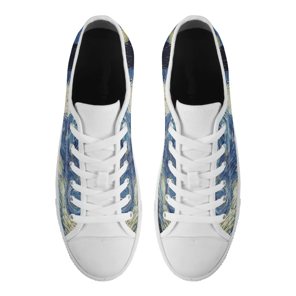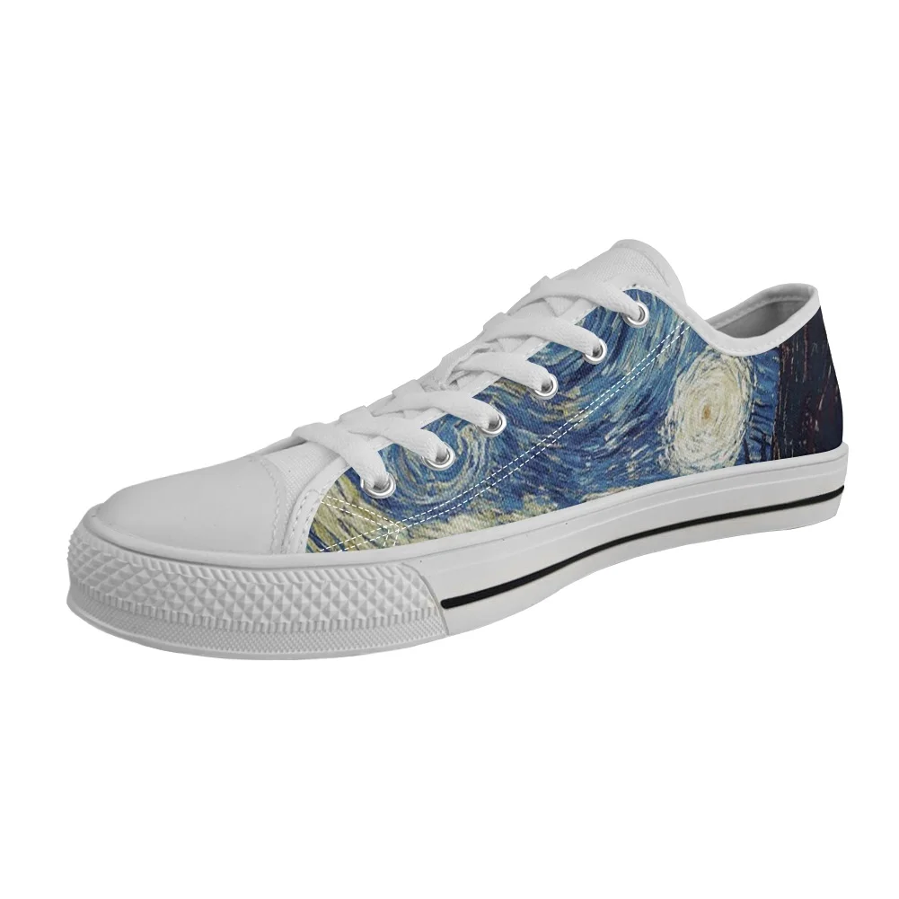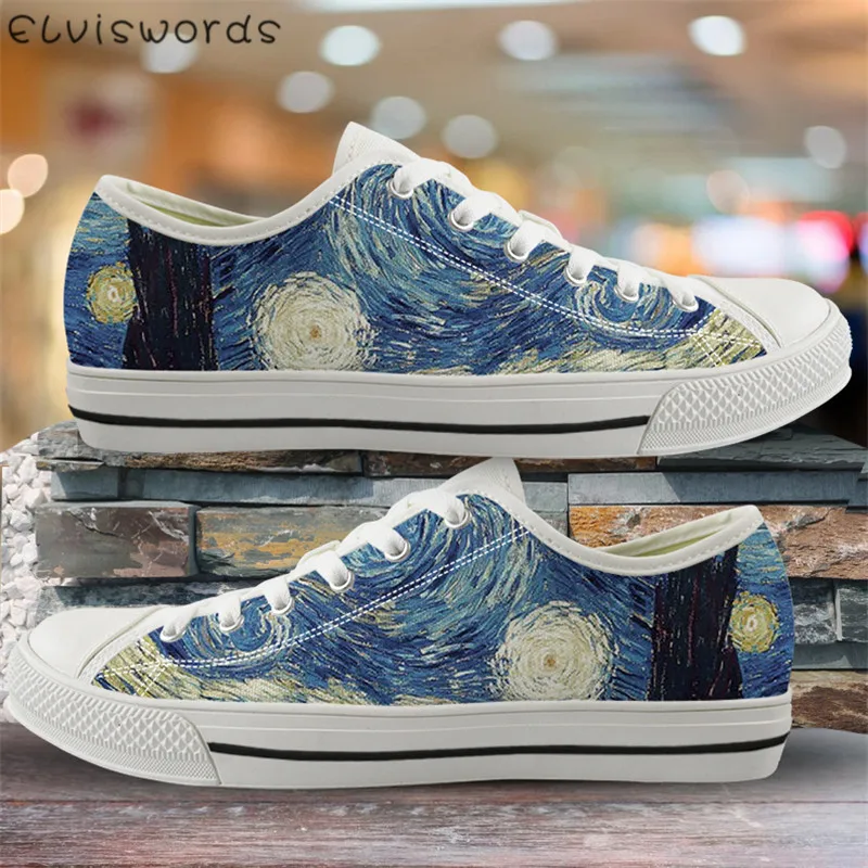 Кеды ELVISWORDS женские, парусиновые кроссовки с низким берцем, Винсент Ван Гог, звездная ночь, повседневная обувь на плоской подошве для молодых девушек, весна-лето