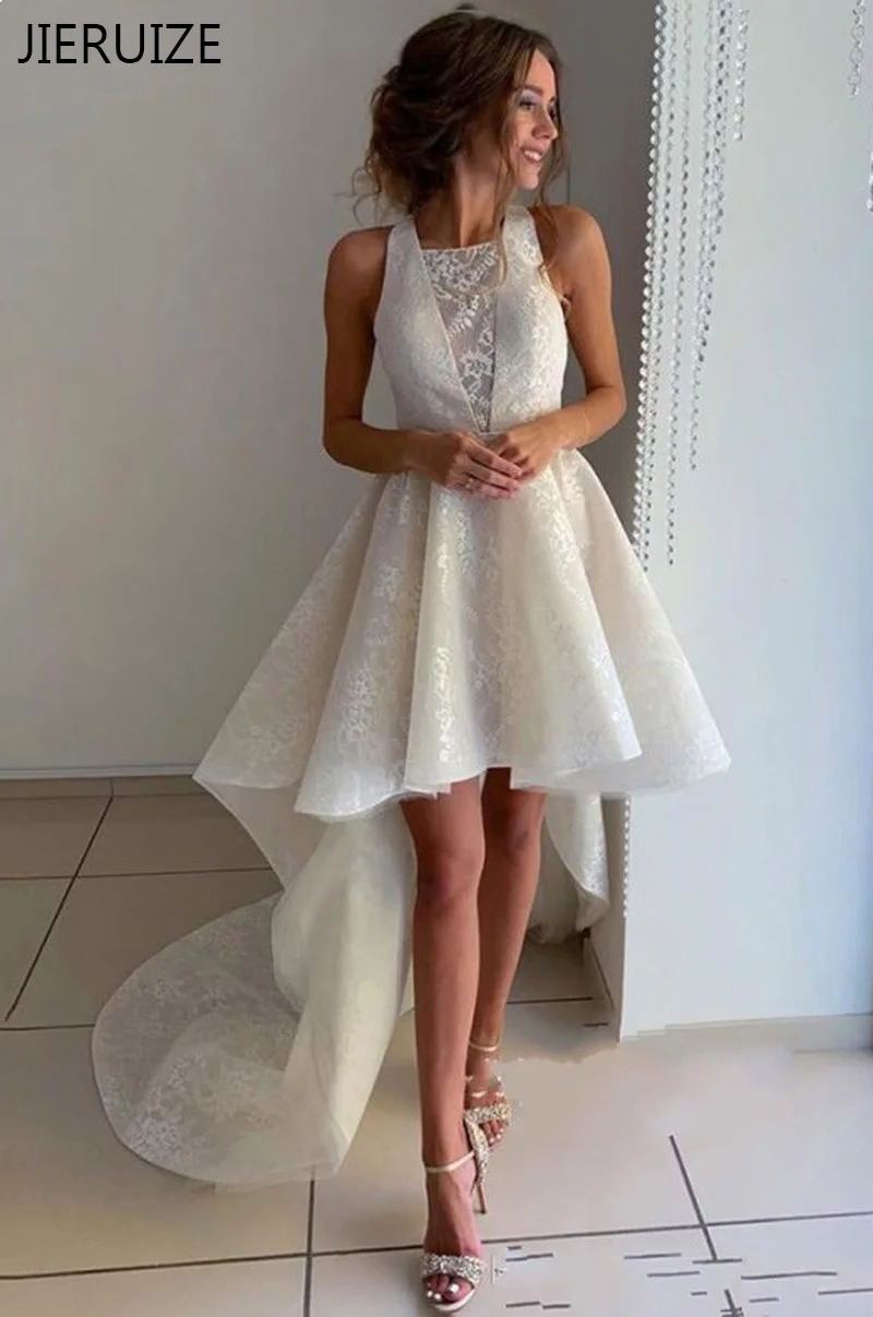 JIERUIZE Свадебные платья цвета слоновой кости с кружевом спереди и длинной спинкой, свадебные платья с лямкой на шее, свадебное платье для невесты, платье