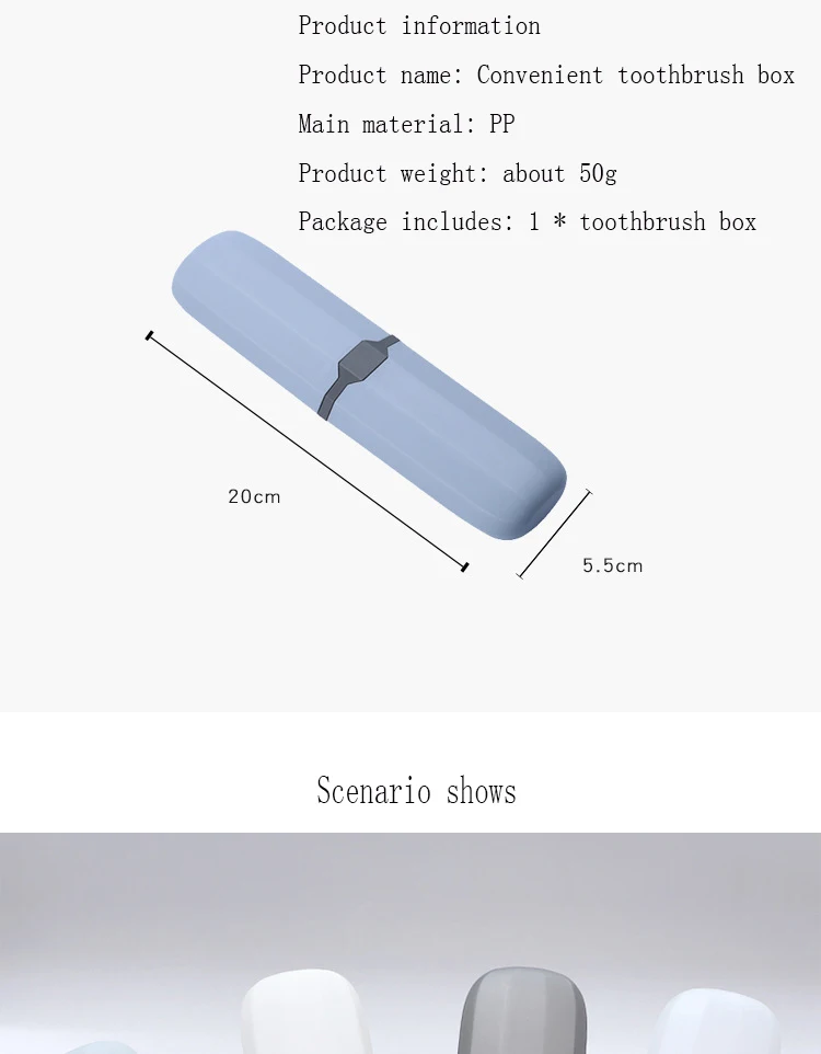 ★Название продукта: портативный чехол для зубной щетки★Размер продукта: 20*5,5 см★Товары включают:1 * коробка для зубных щеток★Предметы размещения: зубная паста, зубная щетка★Характеристики продукта: гигиенический, легко носить с собой, простой и стильный, можно взять самолеты★Материал изделия: полипропилен★Структура продукта: верхняя крышка, основной корпус и нижняя крышка★Примечания:1. Когда не используется в течение длительного времени, выньте полотенце и высушите его.2. Не размещайте его рядом с источником тепла, иначе это повлияет на использование.3. Хранить в недоступном для детей месте