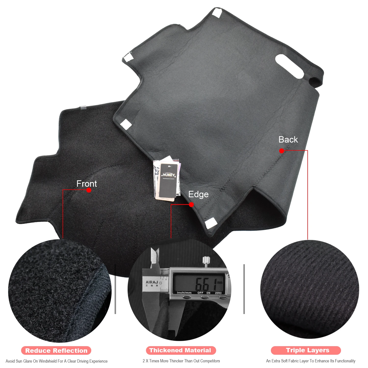 Простая установкаКонтуры, чтобы соответствовать приборной панелиНе садится, не выцветает и не искажаетЗащищает приборную панель от УФ-лучейИзбавляет от трещинНе бликуетУФ стабилизированный высококачественный Полиэстер Авто тканьДышит для рассеивания теплаБольшие вентиляционные вырезы, чтобы не ограничивать запотевающий поток воздуха