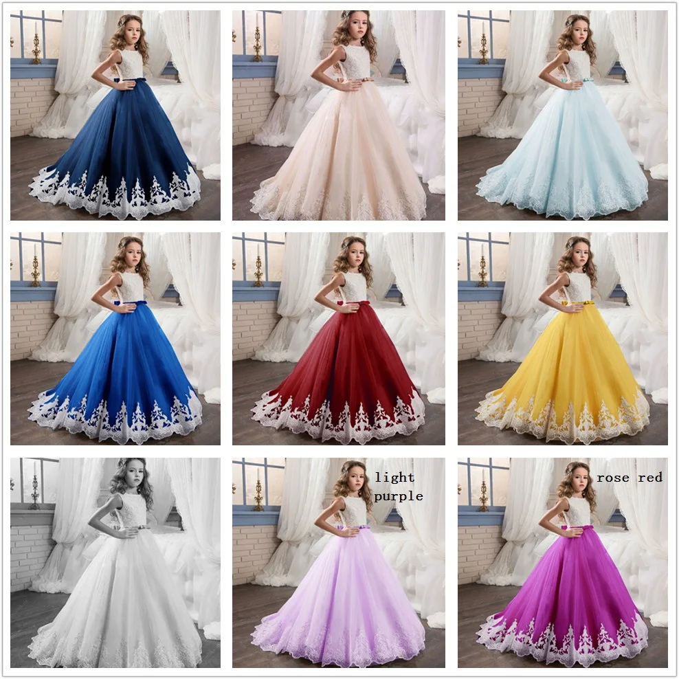9 цветов, платья для девочек с цветами для свадебных торжеств, тюлевые кружевные аппликации, детские платья для первого причастия, вечерние платья принцессы для девочек