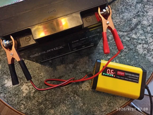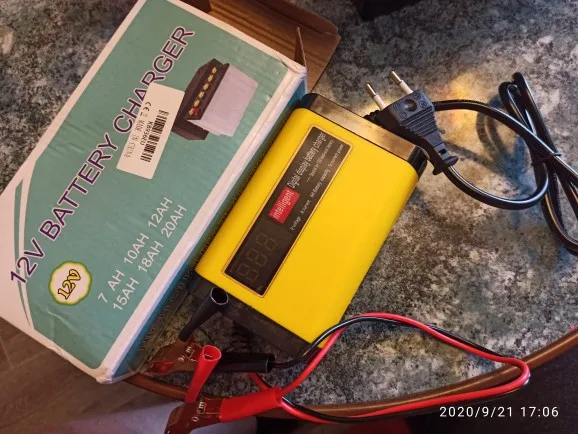 Посылка пришла до Казани за 14 дней. Коробка была помятая, но зарядник не повреждён. Включается, сейчас в работе, посмотрю как справится. Купил для зарядки автомобильного аккумулятора. Инструкция есть, русского языка нет, но ничего сложного. Просто красный к плюсу, чёрный к минусу и он сам все сделает. Если плохой будет ошибка, если все хорошо, то будет моргать красная лампочка. Когда зарядится покажет Full. Заказывал 04.09.20