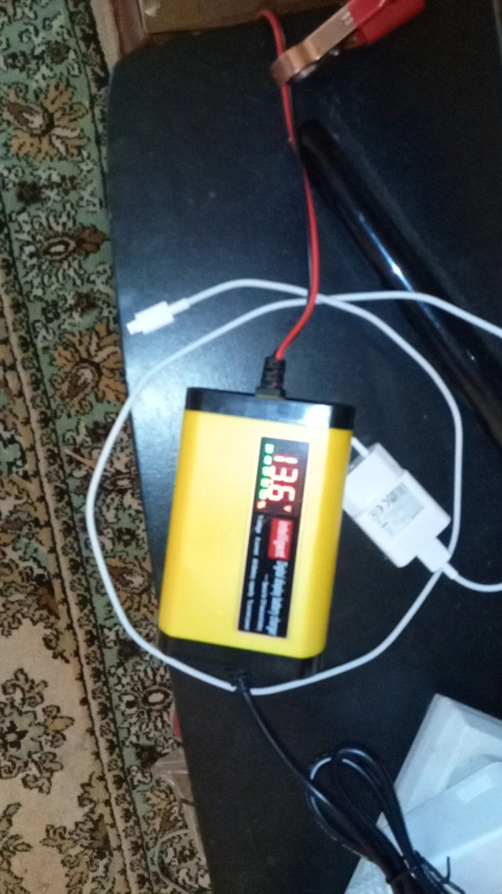 Заказ пришел за 10 дней после оплаты в Пятёрочку (вместе-быстро). Описание соответствует. Индикация во время заряда по кругу через две секунды: напряжение на АКБ (V), ток зарядки(А), количество залитой в АКБ энергии (Ah). Внизу- заряд АКБ в процентах, увеличивается по мере зарядки. Провода короткие, на холоде (+10) дубовые. За 700 руб. пойдёт, у нас за такие деньги всё равно ничего подобного не купишь.
