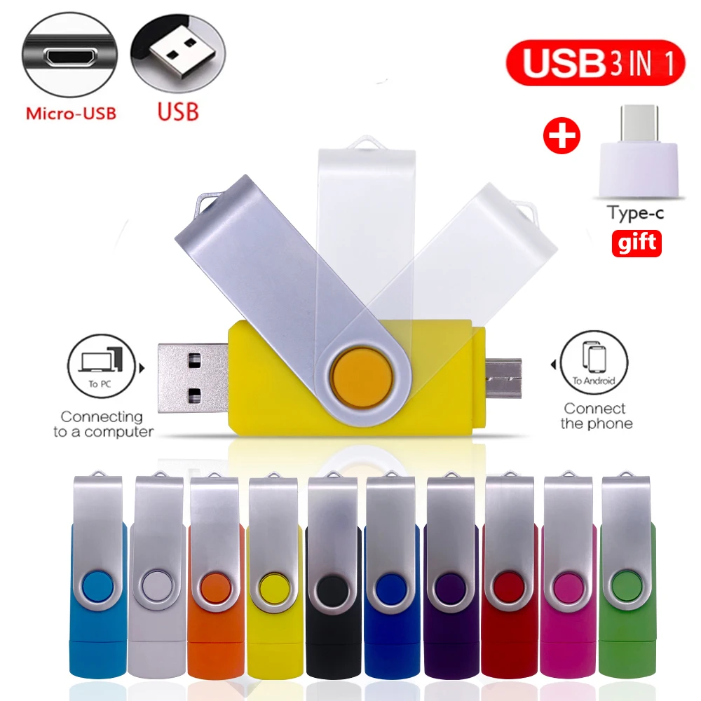 USB-флеш-накопитель для смартфонов Android, двусторонний, 8 ГБ, 16 ГБ, 32 ГБ