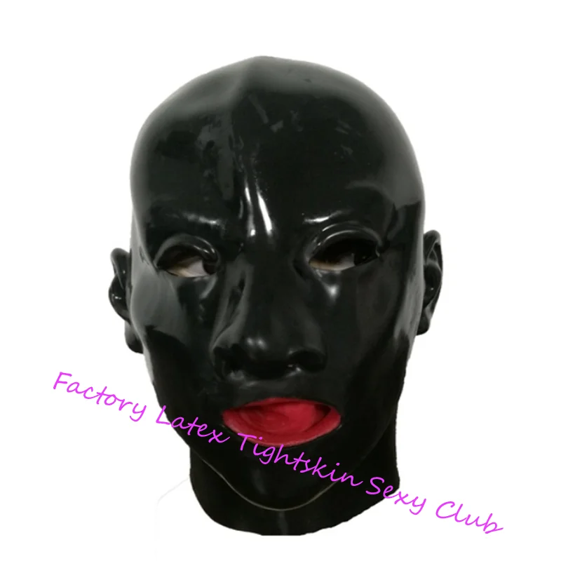 Латексная маска, полная форма, открытый и слепый стиль, резиновый унисекс капюшон с красными зубами, маска для губ, оболочка для языка, трубка для носа