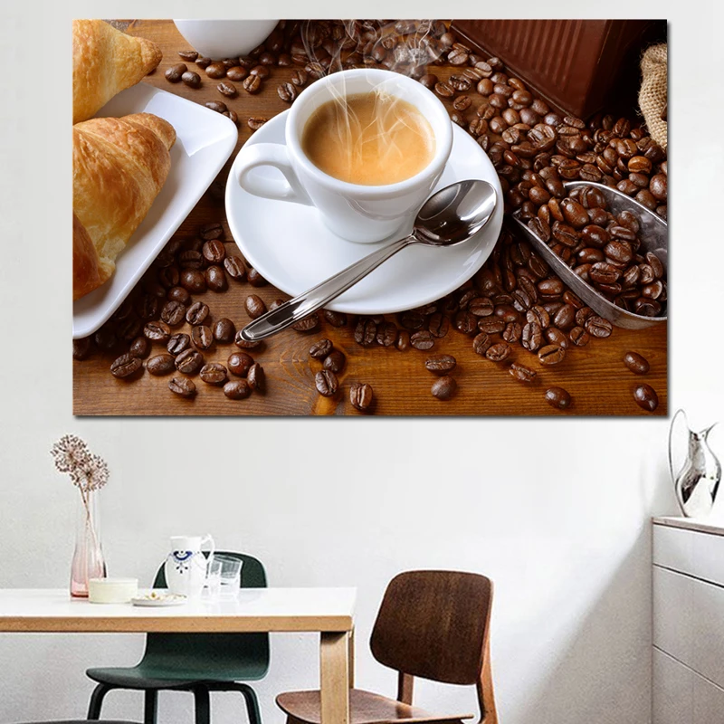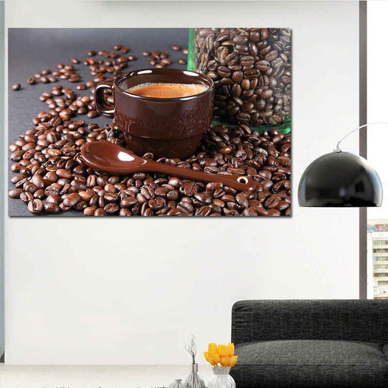 Картины на холсте, домашний декор, картина с HD-печатью, картины из кофейных зерен на пару, чашка кофе, постер, настенное искусство для кухни
