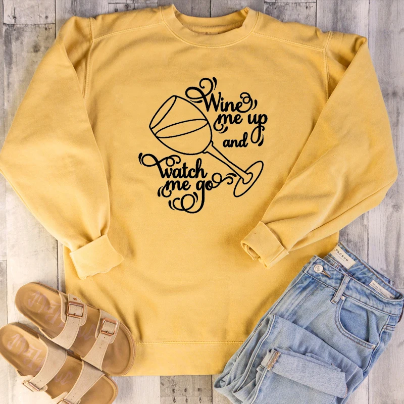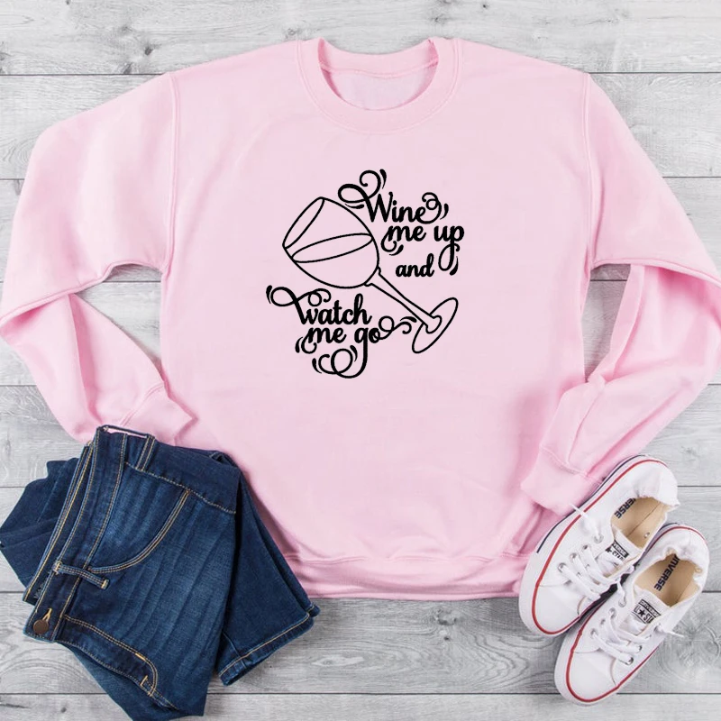 Винтажный Женский свитшот с графическим рисунком Wine me up and watch me go wine lover