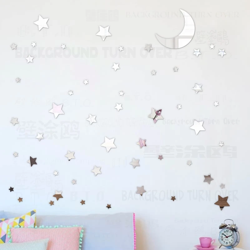 65 шт., зеркальные наклейки, декоративные наклейки для ванной комнаты, 3D наклейки со звездой, луной, мерцающие, для детей, для девочек, для маленьких мальчиков, R064