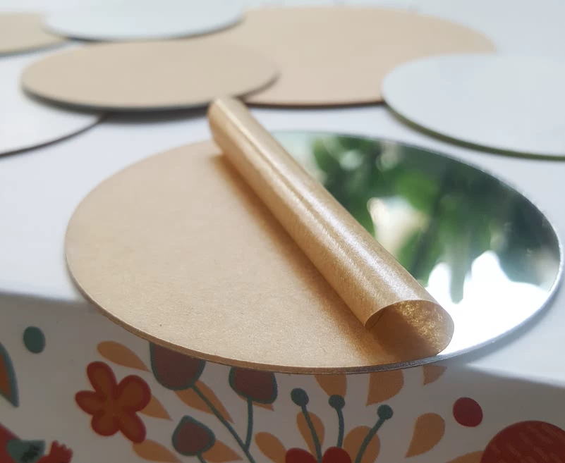 Крепкий клейкий материал, покрытый защитной бумагой на зеркальной поверхности.