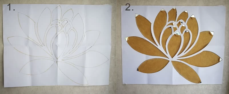 1. Поместите Бумажный шаблон на стену/потолок, удалите детали узора.