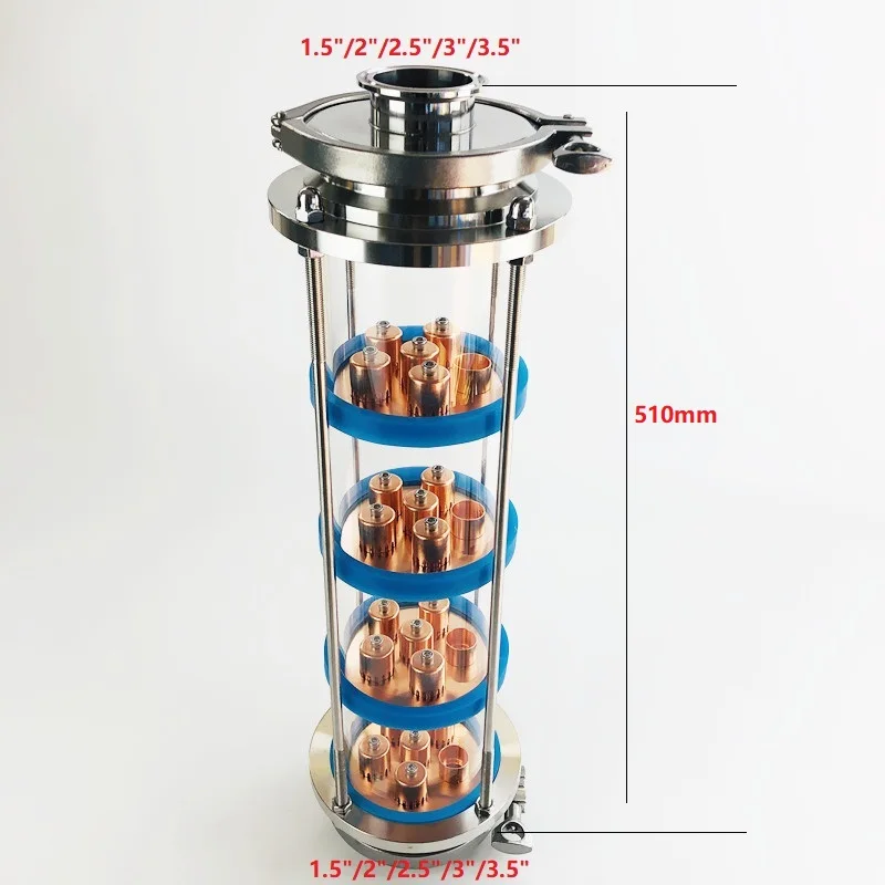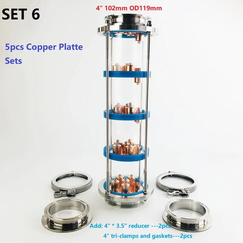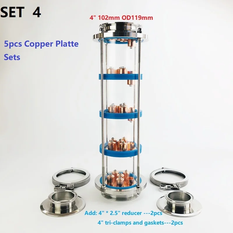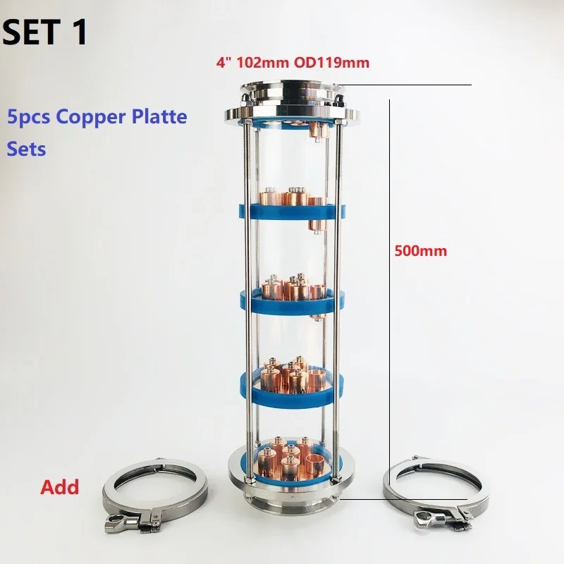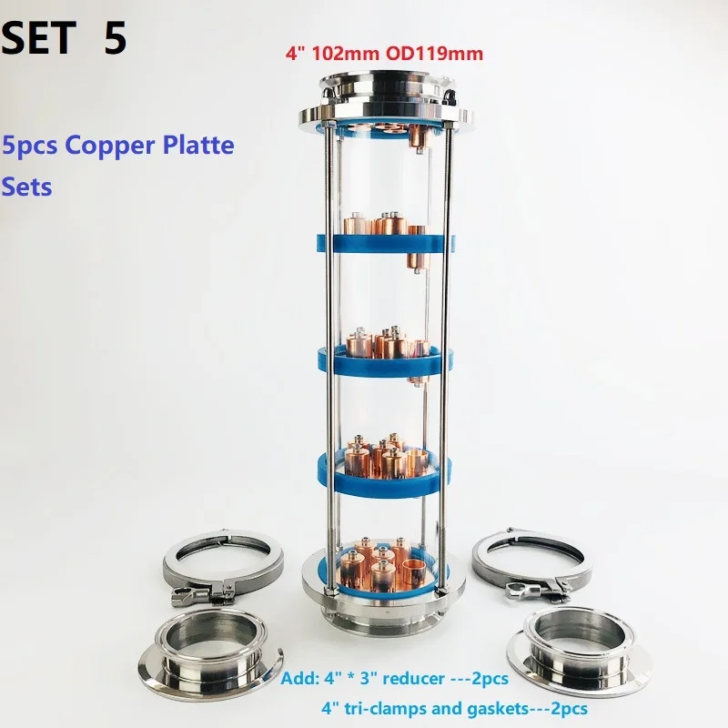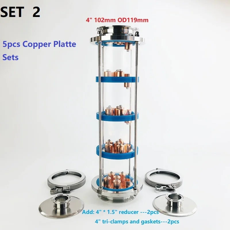 Новая 4-дюймовая колонна для дистилляционных линз с наборами из 5 медных пластин, трехзажимное смотровое стекло, соединение из нержавеющей стали 304