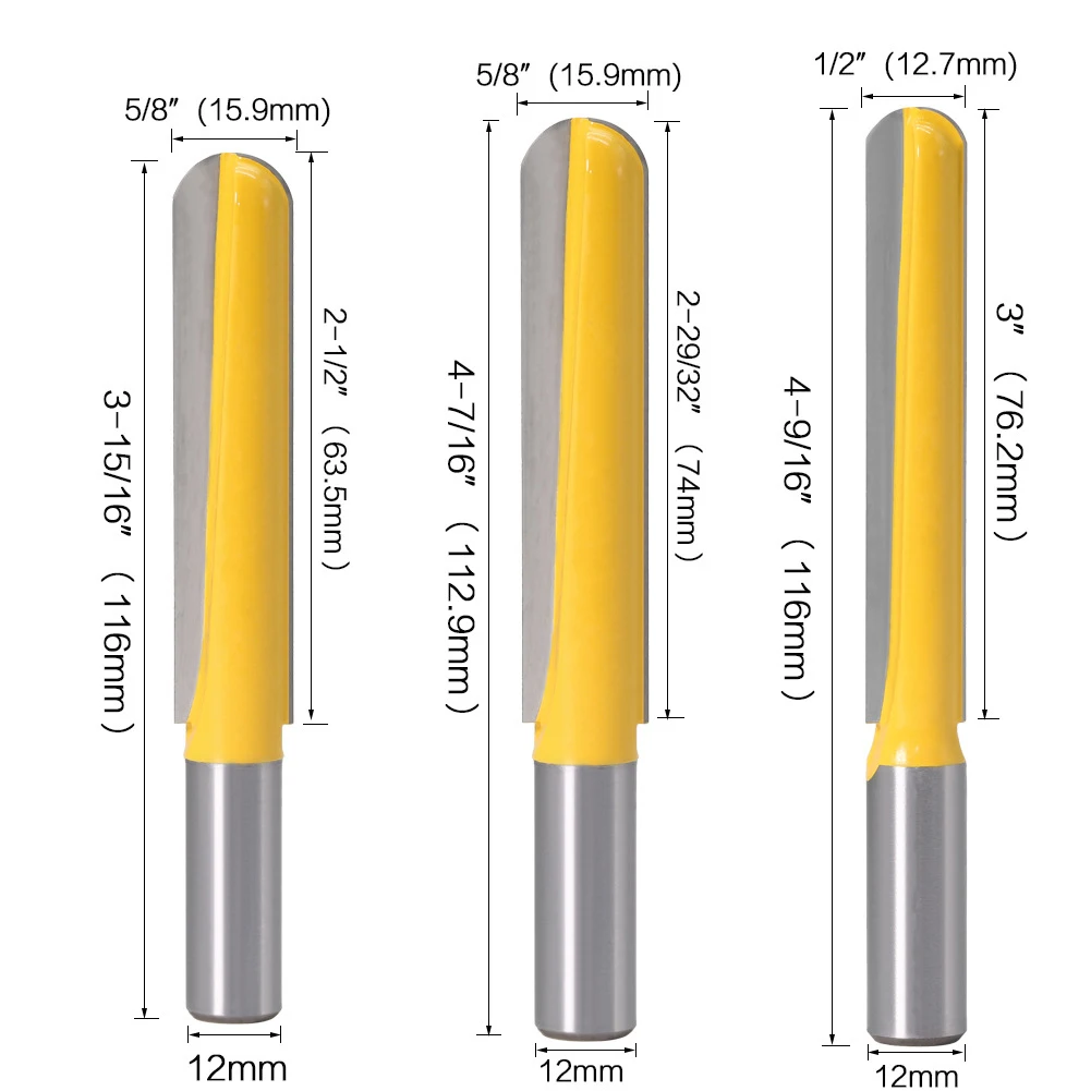 Концевая фреза, твердосплавный инструмент для резьбы по дереву, с длинным лезвием, круглым носиком, 1 шт., 12 дюйма, 12,7 мм, 12 мм