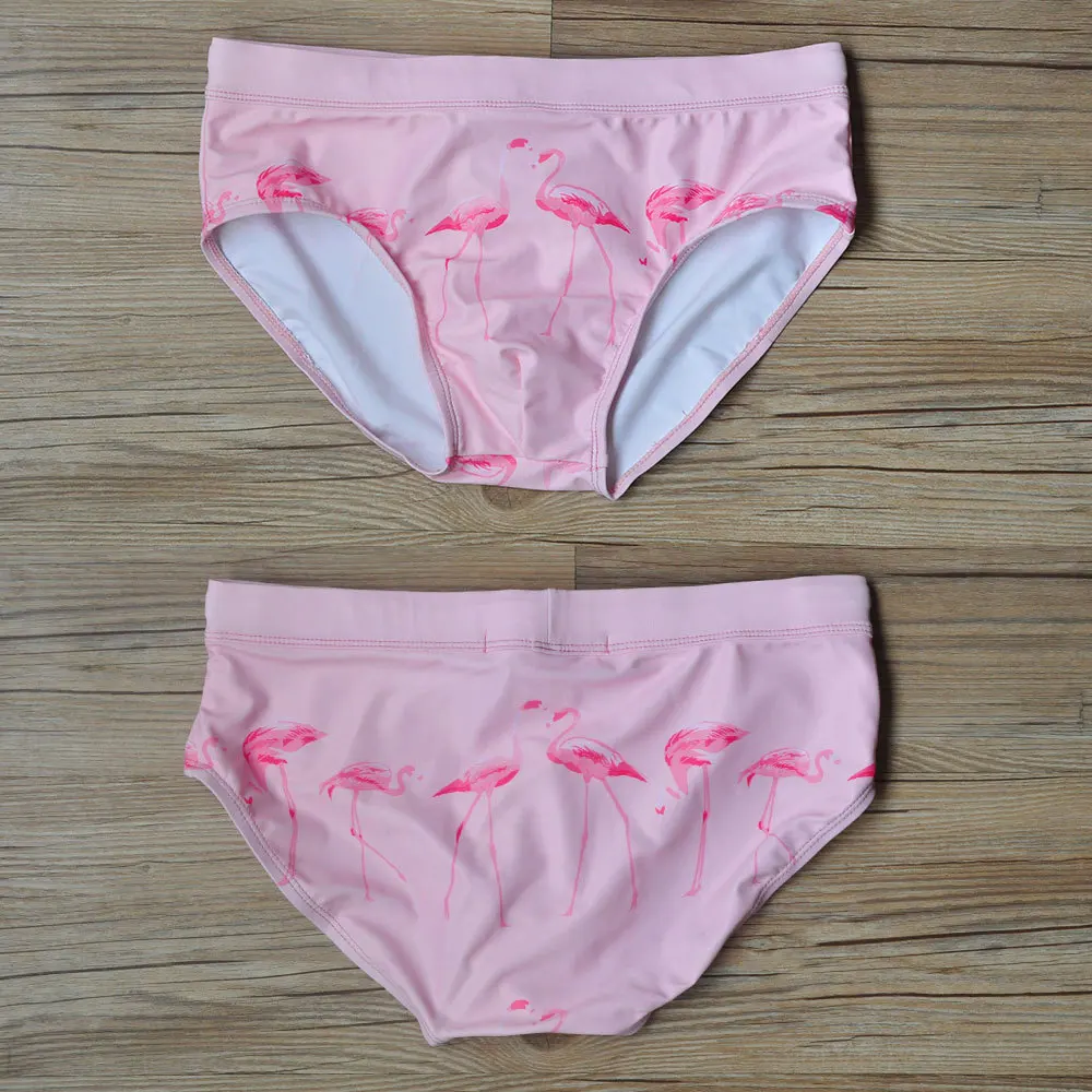 Купальник мужской с принтом фламинго, пикантные Трусы-брифы для плавания, купальный костюм с заниженной талией для бассейна, пляжные шорты для серфинга