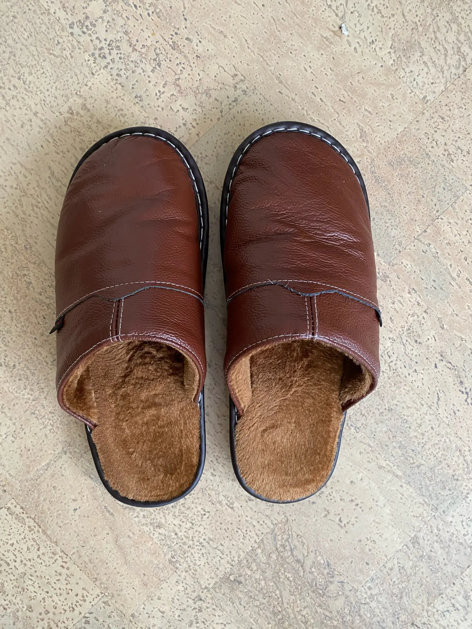Мужские домашние тапочки для зимы; Теплые плюшевые тапочки для женщин; Обувь унисекс из натуральной кожи; Домашняя обувь; Большие размеры 11