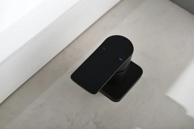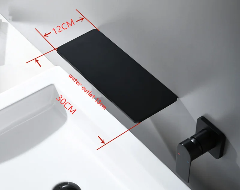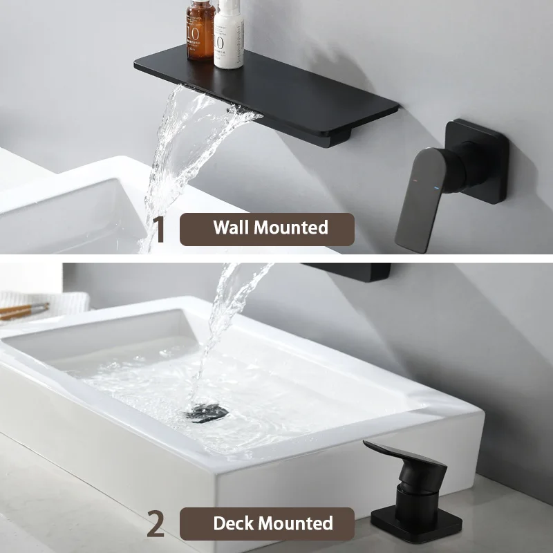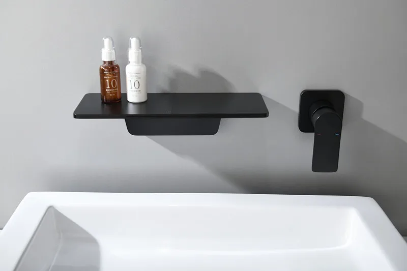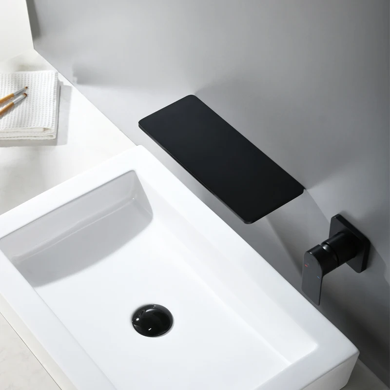 Настенный смеситель для раковины, матовый черный латунный смеситель-водопад для ванной комнаты, краны для холодной и горячей воды