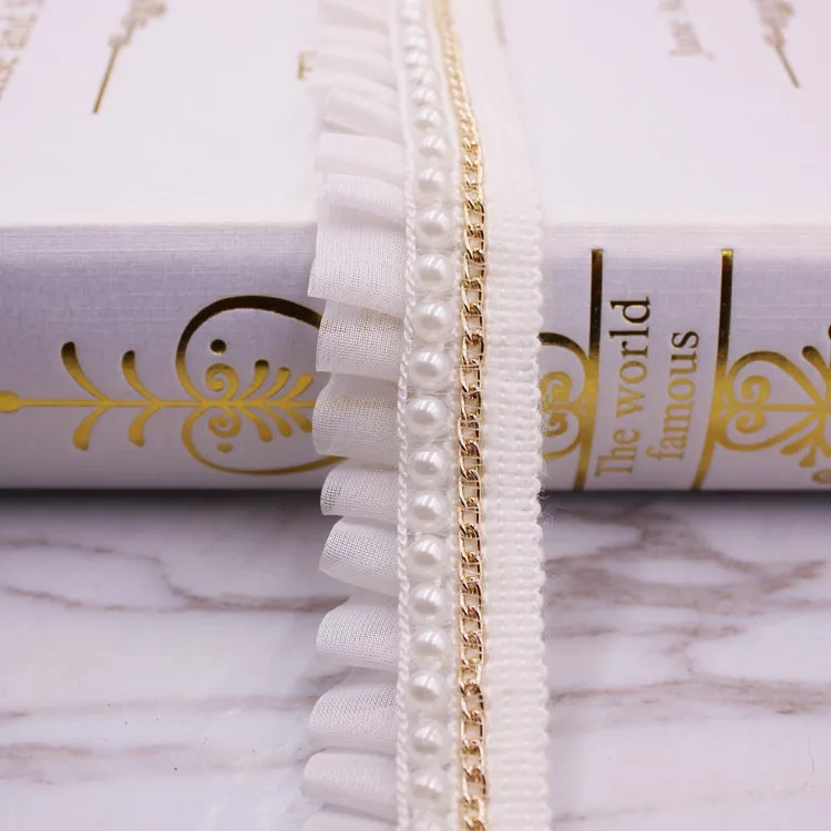 2 ярдов белый жемчуг с бисером хлопок шифон вышитая цепочка кружевная Лента отделка африканская кружевная ткань ручная работа свадебное платье Шитье
