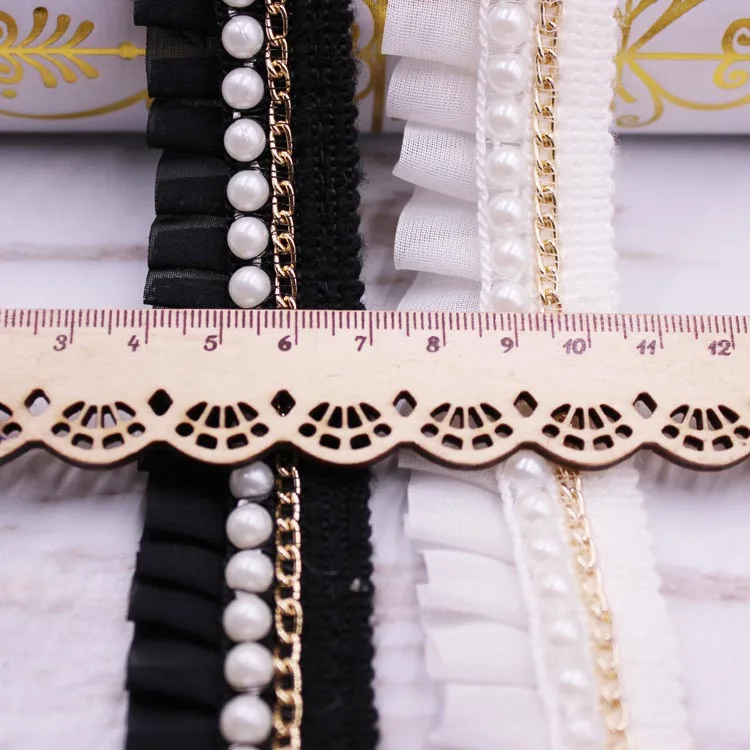 2 ярдов белый жемчуг с бисером хлопок шифон Вышитые цепи Кружева Лента отделка африканская кружевная ткань ручной работы свадебное платье Шитье